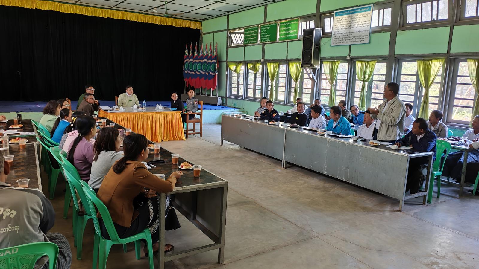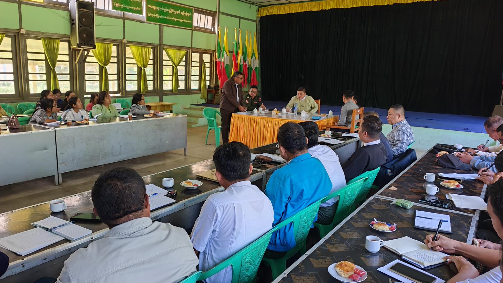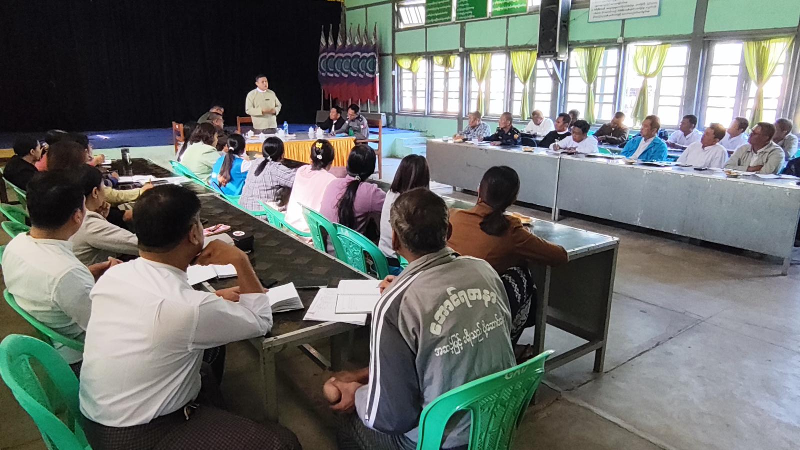 ရှေးဦးစွာ မြို့နယ်စီမံခန့်ခွဲရေးနှင့်အုပ်ချုပ်ရေးကော်မတီဥက္ကဋ္ဌ ဦးအောင်ဇော်မင်းက ပါတီစုံဒီမိုကရေစီအထွေထွေရွေးကောက်ပွဲတွင် မဲဆန္ဒရှင်ပြည်သူများ အချိန်တိုအတွင်းဆန္ဒမဲပေးနိုင်ရေးအတွက် ဆောင်ရွက်ရမည့် အစီအစဉ်များကို မဲရုံတာဝန်ကျဝန်ထမ်းများကပူပေါင်း ဆောင်ရွက်နိုင်ရေးစီစဉ်ထားရန်မှာကြားပြီး မြို့နယ်ရွေးကောက်ပွဲကော်မရှင်ဥက္ကဋ္ဌ ဦးရဲနိုင်စိုးက ရွေးကောက်ပွဲနေ့တွင် အကြောင်းအမျိုးမျိုးကြောင့် တာဝန်မထမ်းဆောင်နိုင်သည့် ဝန်ထမ်းများအတွက် အစားထိုးတာဝန်ထမ်းဆောင်ရန် အရန်ဝန်ထမ်းစီစဉ်မှုအခြေအနေများ၊ မြို့နယ်စီမံခန့်ခွဲရေးနှင့်အုပ်ချုပ်ရေးကော်မတီ အဖွဲ့ဝင်(၁) ဗိုလ်မှူးစိုင်းခန့်နိုင်က လုံခြုံရေးဆိုင်ရာကိစ္စရပ်များ၊ မြို့နယ်လူဝင်မှုကြီးကြပ်ရေးနှင့်ပြည်သူ့အင်အားဦးစီးဌာန မြို့နယ်ဦးစီးမှူး ဦးကျော်စိုးက ဆန္ဒမဲပေးပိုင်ခွင့်ရှိသူတိုင်း မဲပေးခွင့်မဆုံးရှုံးစေရေးအတွက် နိုင်ငံသားစိစစ်ရေးကတ်ပြားများ ဆောင်ရွက်ပေးမည့် အခြေအနေများကို အသီးသီးဆွေးနွေးခဲ့ကြသည်။