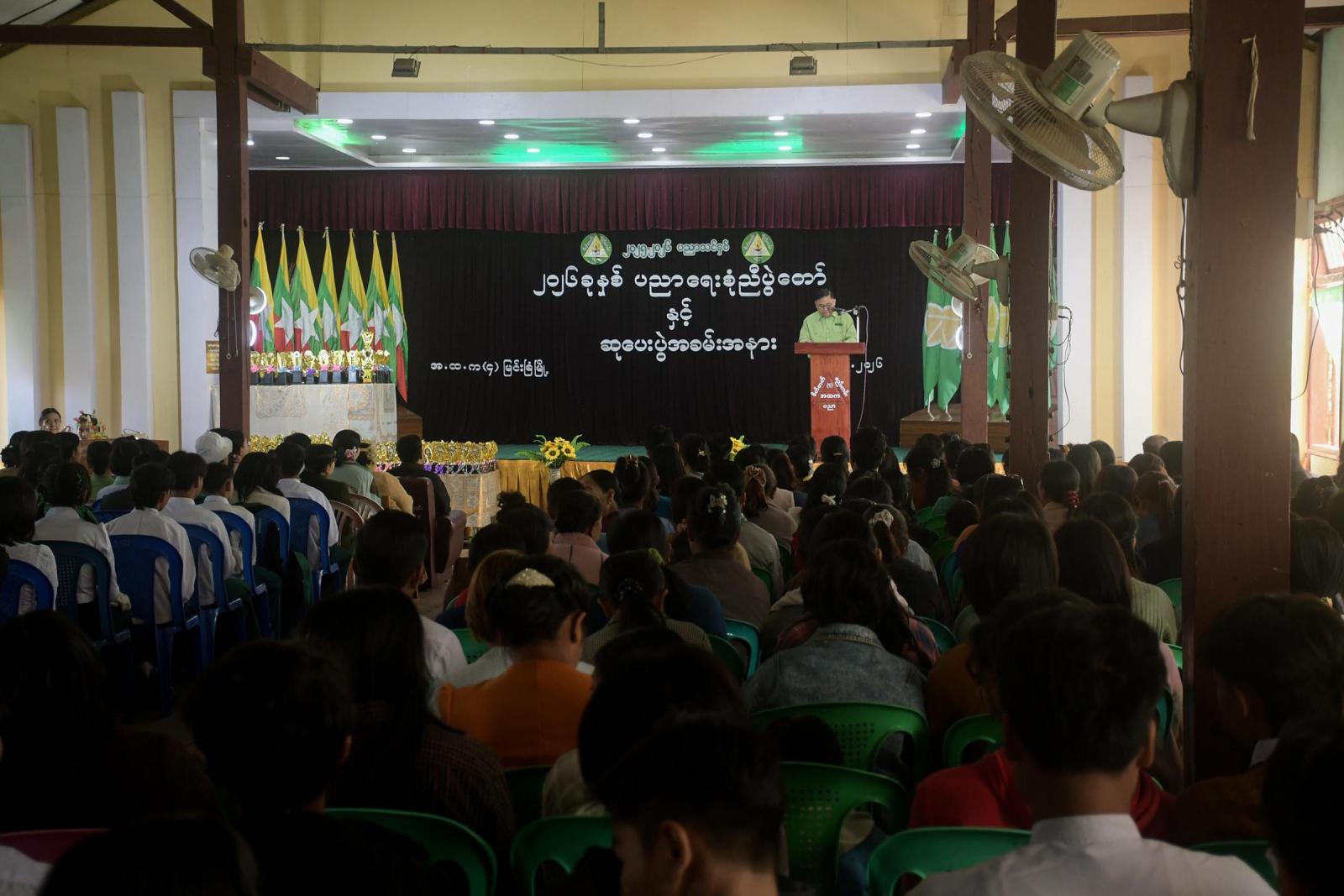 ထို့နောက် ခရိုင်စီမံခန့်ခွဲရေးနှင့်အုပ်ချုပ်ရေးကော်မတီဥက္ကဋ္ဌ ဦးမင်းမင်းထွန်းက အဖွင့်အမှာစကား ပြောကြားခဲ့သည်။ ဆက်လက်၍ ၂၀၂၅-၂၀၂၆ ပညာသင်နှစ်အတွင်း လူရည်ချွန်ဆုများ၊ တိုင်းအဆင့်ဆုများ၊ မြို့နယ်အဆင့်ဆုများ၊ ကျောင်းအဆင့် စွမ်းရည်ဆုများ၊ ကျောင်းတွင်းပညာရည်ချွန်ဆုများ၊ စာစီစာကုံးပြိုင်ပွဲဆုများ၊ အားကစားဆုများ၊ အသင်းစံပြဆုများအား ခရိုင်စီမံခန့်ခွဲရေးနှင့်အုပ်ချုပ်ရေးကော်မတီဥက္ကဋ္ဌ ဦးမင်းမင်းထွန်းနှင့် အဖွဲ့ဝင်များ၊ မြို့နယ်စီမံခန့်ခွဲရေးနှင့်အုပ်ချုပ်ရေးကော်မတီဥက္ကဋ္ဌ ဦးစိုးထွဋ်နှင့်အဖွဲ့ဝင်များ၊ ဌာနဆိုင်ရာတာဝန်ရှိသူများ၊ ကျောင်းအကျိုးတော်ဆောင်များမှ အသီးသီး ဆုများချီးမြှင့်ပေးအပ်ခဲ့ကြသည်။