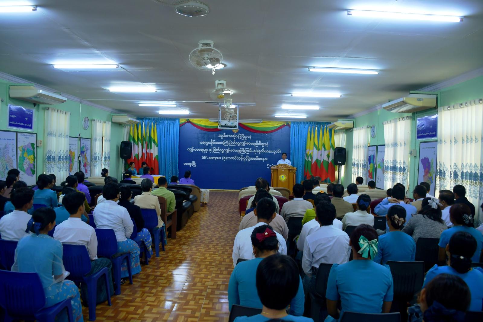 မကွေးတိုင်းဒေသကြီး၊ ပြည်သူ့ကျန်းမာရေးဦးစီးဌာန သင်ကြားရေးစင်တာတွင် ပို့ချမည့် ကျန်းမာရေးမှူး- ၃ (ပြည်သူ့ကျန်းမာရေးကြီးကြပ် - ၁)Off-campus (၃)လ (ဒုတိယအသုတ်)သင်တန်းဖွင့်ပွဲအခမ်းအနားကို ယမန်နေ့ နံနက် ၉ နာရီက တိုင်းဒေသကြီး ပြည်သူ့ကျန်းမာရေးဦးစီးဌာန အစည်းအဝေးခန်းမ၌ ကျင်းပရာ တိုင်းဒေသကြီးဝန်ကြီးချုပ် ဦးတင့်လွင်၊ နယ်မြေခံတပ်နယ်မှ တပ်မတော်အရာရှိကြီးများ၊ တိုင်းဒေသကြီးအစိုးရအဖွဲ့ဝင် ဝန်ကြီးများ၊ ဆေးတက္ကသိုလ်(မကွေး)နှင့် အခြေခံကျန်းမာရေးတက္ကသိုလ်မှ ပါမောက္ခချုပ်များ၊ တိုင်းအဆင့်ဌာနဆိုင်ရာ တာဝန်ရှိသူများ၊ တိုင်းဒေသကြီးပြည်သူ့ကျန်းမာရေးနှင့် ကုသရေးဦးစီးဌာနမှ တာဝန်ရှိသူများ၊ သင်ကြားရေးအဖွဲ့ဝင်များ၊ ကျန်းမာရေးမှူး-၃(ပြည်သူ့ကျန်းမာရေးကြီးကြပ်-၁) သင်တန်းသား/သင်တန်းသူများ တက်ရောက်ခဲ့ကြသည်။
