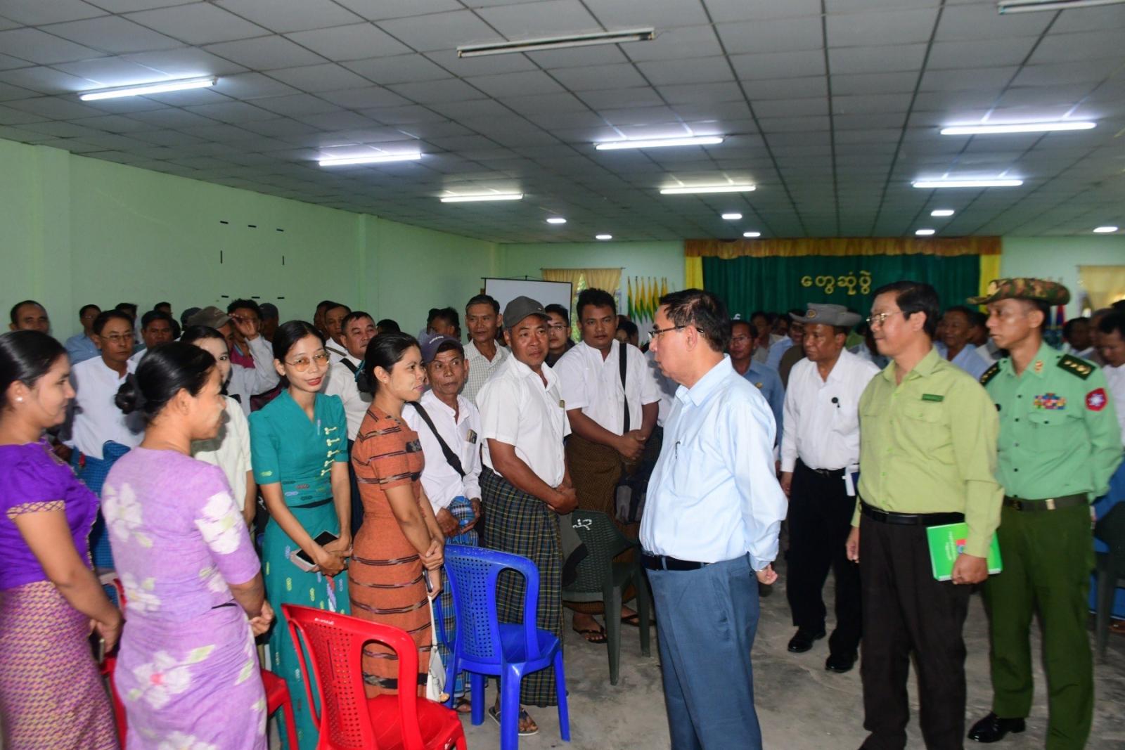 ထို့နောက် ပဲခူးတိုင်းဒေသကြီးဝန်ကြီးချုပ် ဦးမျိုးဆွေဝင်းသည် သနပ်ပင်မြို့နယ် အထွေထွေအုပ်ချုပ်ရေးဦးစီးဌာန၊ အစည်းအဝေးခန်းမှ၌ ဌာနဆိုင်ရာများ၊ ရပ်ကွက်/ကျေးအုပ်စု အုပ်ချုပ်ရေးမှူးများ၊ MSMEs လုပ်ငန်းရှင်များ၊ ဒေသခံပြည်သူများနှင့်တွေ့ဆုံခဲ့ရာ သနပ်ပင်မြို့နယ်အုပ်ချုပ်ရေးမှူး ဦးဝင်းသန်းက အုပ်ချုပ်ရေး၊ စိုက်ပျိုးရေး၊ မွေးမြူရေးနှင့် MSMEs လုပ်ငန်းဆောင်ရွက်မှုအခြေအနေများအား Power Point ဖြင့် ရှင်းလင်းတင်ပြခဲ့သည်။ ၎င်းနောက် ရပ်ကွက်/ကျေးရွာအုပ်စု အုပ်ချုပ်ရေးမှူးများက ဒေသဖွံ့ဖြိုးရေးဆိုင်ရာ ကိစ္စရပ်များတင်ပြခဲ့ကြရာ တိုင်းဒေသကြီးဝန်ကြီးချုပ်က ဌာနဆိုင်ရာများနှင့် ပေါင်းစပ်ညှိနှိုင်း ဆောင်ရွက်ပေးခဲ့ပြီး တက်ရောက်လာသည့် ဒေသခံများအား ရင်းရင်းနှီးနှီး လိုက်လံနှုတ်ဆက် အားပေးစကား ပြောကြားခဲ့သည်။