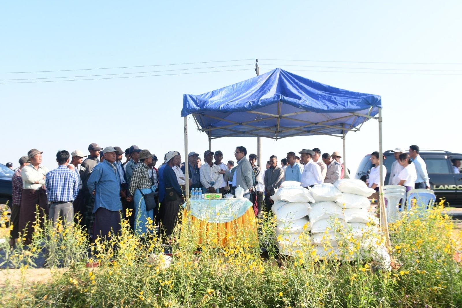 ရှေးဦးစွာ ပဲခူးတိုင်းဒေသကြီး ဝန်ကြီးချုပ် ဦးမျိုးဆွေဝင်းသည် သနပ်ပင်မြို့နယ်၊ အောက်စုရပ်ကွက်၌ တစ်ကွင်းတစ်ဆက်တည်း နွေစပါး(၂)သီးစိုက် ဧက(၁၀၀) စိုက်ပျိုးအောင်မြင်ဖြစ်ထွန်းနေမှုအား ကွင်းဆင်းကြည့်ရှုစစ်ဆေးခဲ့ပြီး ဒေသခံတောင်သူများနှင့်တွေ့ဆုံ၍ ပြည်ပစျေးကွက်ဝင် တန်ဖိုးမြင့် ပေါ်ဆန်းစပါးမျိုးများ တိုးချဲ့စိုက်ပျိုးနိုင်ရေး၊ သဘာဝမြေဩဇာ ကိုယ်တိုင်ထုတ်လုပ်သုံးစွဲနိုင်ရေး၊ ဒေသနွားနှင့် ဒေသကြက် တိုးချဲ့မွေးမြူရန် လမ်းညွှန်မှာကြားခဲ့သည်။ ၎င်းနောက် တိုင်းဒေသကြီး မွေးမြူရေးနှင့်ကုသရေးဦးစီးဌာန ညွှန်ကြားရေးမှူးက ဒေသနွားအား မေထုန်မဲ့သားစပ်ခြင်း၊ မျိုးမြှင့်တင်ပေးခြင်း အသိပညာပေးပြောကြားခဲ့ပြီး ဒေသခံတောင်သူများအား သွင်းအားစုများ ပေးအပ်ခဲ့သည်။