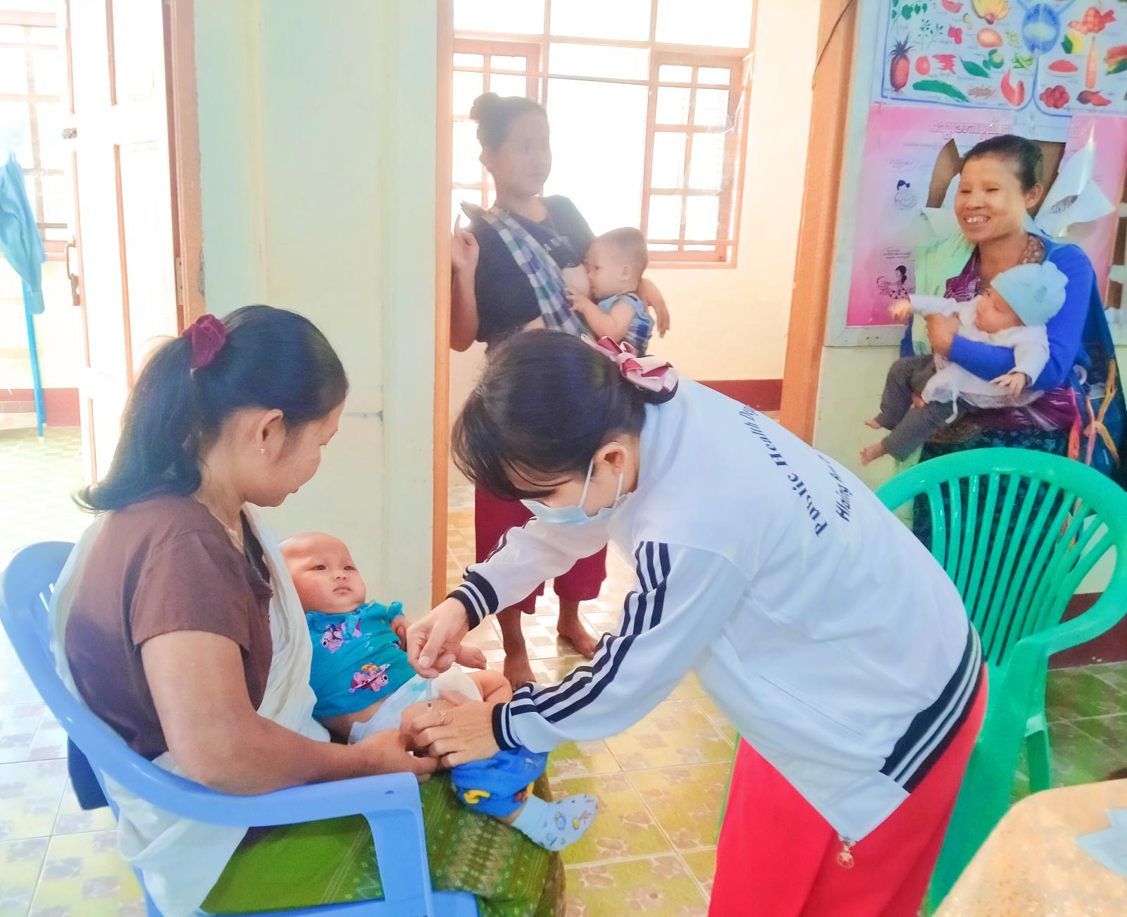 အဆိုပါလုပ်ငန်းကို ကျေးလက်ကျန်းမာရေးဌာနရှိ ကျန်းမာရေးဝန်ထမ်းများနှင့် တိုက်နယ်ဆေးရုံမှ ကျန်းမာရေးဝန်ထမ်းများတို့က မွေးစမှအသက်တစ်နှစ်ခွဲအထိ ကလေးငယ်များအား ဘီစီဂျီ ဆုံဆို့၊ ကြက်ညှာ၊ မေးခိုင်-အသည်းရောင် အသားဝါဘီ၊ ဦးနှောက်အမြှေးရောင် (ငါးမျိုးစပ်ကာကွယ်ဆေး)၊ ပြင်းထန်အဆုတ်ရောင်၊ ပြင်းထန်ဝမ်းပျက်ဝမ်းလျှော၊ ဝက်သက်၊ ဂျိုက်သိုးရောဂါ စသည့် ကာကွယ် ဆေးများကို ထိုးနှံတိုက်ကျွေးပေးခဲ့သည့်အပြင် ကိုယ်ဝန်ဆောင်မိခင်များတို့၏ လိုအပ်သည့်ကျန်းမာရေးစောင့်ရှောင့်မှုများလည်း ဆောင်ရွက်ပေးလျက်ရှိကြောင်း သိရသည်။