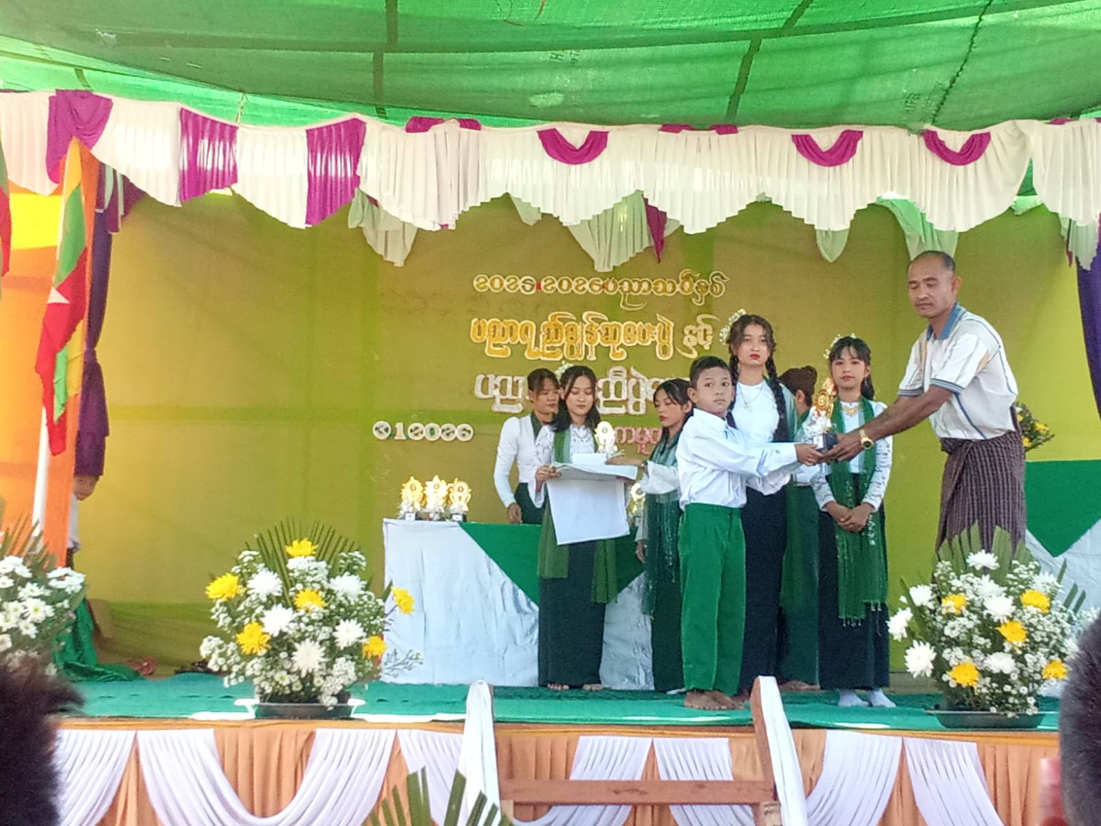 ထို့နောက် ၂၀၂၄-၂၀၂၅ ပညာသင်နှစ် တွင် KG အတန်းမှ G-8 အတန်းထိ အောင်မြင်သည့် ကျောင်းသားကျောင်းသူများနှင့်ကာယ၊ ဉာဏဆုရရှိသည့်ကျောင်းသား၊ ကျောင်းသူများအား မြို့အုပ်ချုပ်ရေးမှူး ဦးဟိန်းမင်းအောင်နှင့် ဌာနဆိုင်ရာများ၊ ရပ်ကွက်အုပ်ချုပ်ရေးမှူးနှင့် ဆရာ၊ဆရာမများ၊ ကျောင်းကော်မတီဝင်များက ဆုများအသီးသီး ပေးအပ်ချီးမြှင့်ခဲ့ကြကြောင်းနှင့် ပညာရေးစုံညီပွဲတော်တွင် ကျောင်းသား၊ ကျောင်းသူများက အကပဒေသာများနှင့် ကပြဖျော်ဖြေခဲ့ကြကြောင်း သိရသည်။