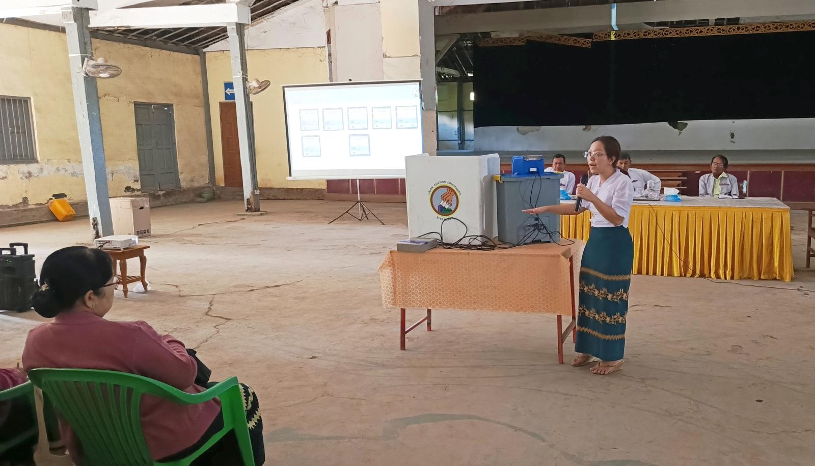 အဆိုပါ လုပ်ငန်းတွေ့ဆုံညှိနှိုင်းဆွေးနွေးခြင်းနှင့် မဲရုံမှူး၊ ဒုမဲရုံမှူးများ စက်ကိုင်မွမ်းမံသင်တန်းသို့ ခရိုင်စီမံခန့်ခွဲရေးနှင့် အုပ်ချုပ်ရေးကော်မတီဥက္ကဋ္ဌ၊ မြို့နယ်စီမံခန့်ခွဲရေးနှင့် အုပ်ချုပ်ရေးကော်မတီဥက္ကဋ္ဌနှင့် အဖွဲ့ဝင်များ၊ မဲရုံမှူး၊ ဒုမဲရုံမှူးများ၊ ရပ်ကွက်၊ ကျေးရွာရွေးကောက်ပွဲကော်မရှင်များ စုစုပေါင်းအင်အား (၅၀၀)ဦးခန့် တက်ရောက်ခဲ့ကြောင်း သိရသည်။