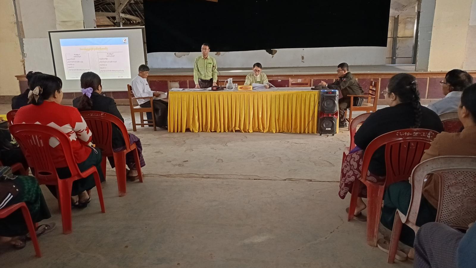 ရှေးဦးစွာ နတ်တလင်းခရိုင် စီမံခန့်ခွဲရေးနှင့်အုပ်ချုပ်ရေးကော်မတီဥက္ကဋ္ဌ ဦးတင်ရွှေက အထွေထွေရွေးကောက်ပွဲ အောင်မြင်စွာကျင်းပနိုင်ရေး ကြိုးပမ်းဆောင်ရွက်ကြရန်နှင့် ကြိုတင်စီမံထားရှိရန်များကို ဆွေးနွေးမှာကြားခဲ့ပြီး၊ မြို့နယ်စီမံခန့်ခွဲရေးနှင့်အုပ်ချုပ်ရေးကော်မတီဥက္ကဋ္ဌ ဦးမျိုးသက်အောင်က စီမံဆောင်ရွက်ထားရှိမှုအခြေအနေ၊ ပထမအကြိမ်မဲပေးမှုမှ အာသာချက်၊ အားနဲချက်များအပေါ် ကြိုတင်ပြင်ဆင်ဆောင်ရွက်မှု၊ ရွေးကောက်ပွဲကျင်းပသည့်နေ့တွင် မှန်မှန်ကန်ကန်နှင့် မြန်မြန်ဆန်ဆန်ဆောင်ရွက်နိုင်ရန် တို့ကိုဆွေးနွေးပြောကြားခဲ့သည်။ ဆက်လက်၍ မြို့နယ်ရွေးကောက်ပွဲကော်မရှင်အဖွဲ့ခွဲဥက္ကဋ္ဌမှ ရွေးကောက်ပွဲဆိုင်ရာ ဥပဒေများနှင့်စပ်လျဉ်း ဆွေးနွေးခဲ့ပြီး၊ မြို့နယ်ရွေးကောက်ပွဲကော်မရှင်အဖွဲ့ခွဲရုံး ဦးစီးအရာရှိမှ MEVM မဲပေးစက်နှင့်ပတ်သက်၍ ရှင်းလင်းပြသ၍ မဲပေးစက်ကိုင်မွမ်းမံသင်တန်းကို ပို့ချခဲ့ကြောင်း သိရသည်။