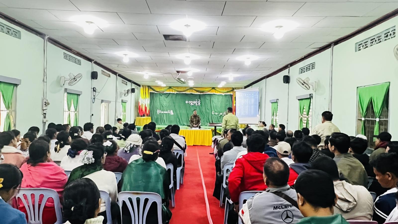 ဦးစွာ အမှတ်(၁၈)စစ်ဆင်ရေးကွပ်ကဲမှုဌာနချုပ်၊ စစ်ဆင်ရေးကွပ်ကဲရေးမှူးက အမှာစကားပြောကြားပြီး ခရိုင်စီမံခန့်ခွဲရေးနှင့်အုပ်ချုပ်ရေးကော်မတီဥက္ကဋ္ဌ ခရိုင်အုပ်ချုပ်ရေးမှူး ဦးဝေမောင်က ရွေးကောက်ပွဲအပိုင်း(၂) အောင်မြင်စွာကျင်းပနိုင်ရေး ဆောင်ရွက်ထားရှိမှုအခြေအနေအား ရှင်းလင်းတင်ပြသည်။ ထို့နောက် တက်ရောက်လာသူများက ပါတီစုံဒီမိုကရေစီအထွေထွေရွေးကောက်ပွဲအပိုင်း(၂) အောင်မြင်ရေး ဆွေးနွေးတင်ပြပြီး အမှတ်(၁၈)စစ်ဆင်ရေးကွပ်ကဲမှုဌာနချုပ်၊ စစ်ဆင်ရေးကွပ်ကဲရေးမှူးက နိဂုံးချုပ်စကား ပြောကြားခဲ့သည်။