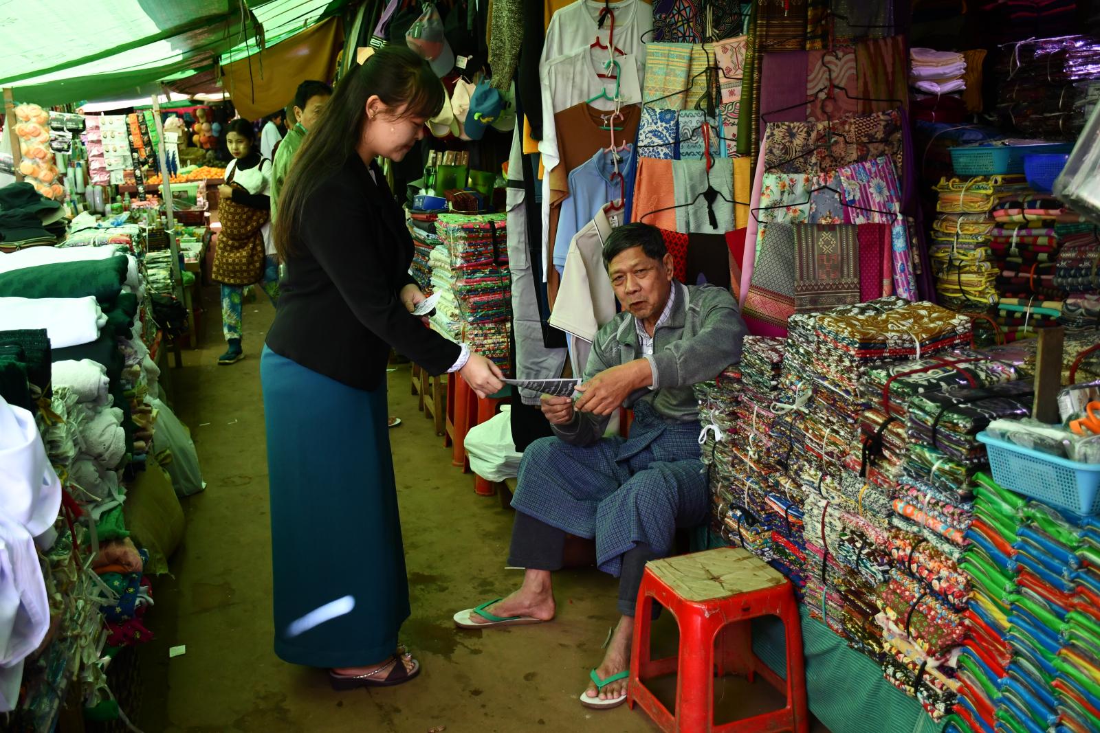 အဆိုပါလက်ကမ်းစာစောက်များ ဖြန့်ဝေရာတွင် မြို့နယ်ပြန်ကြားရေးနှင့်ပြည်သူ့ဆက်ဆံရေးဦးစီးဌာနမှ မြို့နယ်ဦးစီးမှူး ဒေါ်ယုယုအောင်နှင့် ဝန်ထမ်းများက “တို့အတူတူမဲပေးကြမည်” အသိပညာပေးလက်ကမ်းစာစောင်ဖြန့်ဝေပေးခဲ့ပြီး မြို့နယ်ဦးစီးမှူးက မည့်သည့်နေ့မှာမဲပေးရမည်၊ မည်ကဲ့သို့မဲပေးရမည်၊ လွှတ်တော်သုံးရပ်နှင့် တိုင်းရင်းသားလူမျိုးဖြစ်ပါက တိုင်းရင်းသားမျိုးနွယ်စုကိုလည်းမဲပေးနိုင်ကြောင်း ပြောကြားခဲ့ကြောင်း သိရသည်။
