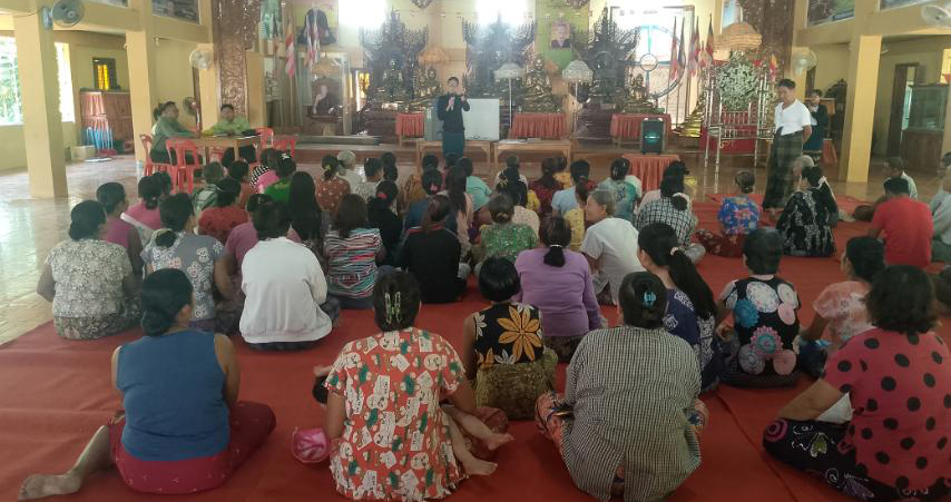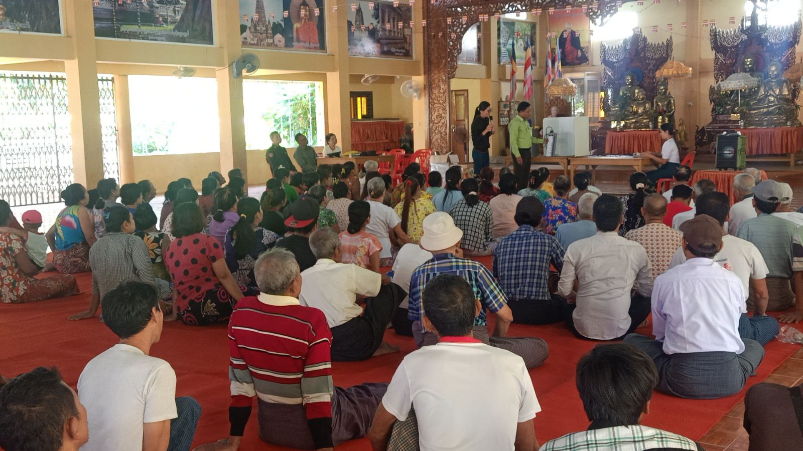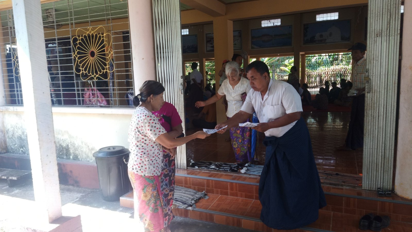 ဆက်လက်၍ ပြန်ကြားရေးနှင့်ပြည်သူ့ဆက်ဆံရေးဦးစီးဌာနမှ ဝန်ထမ်းများက တက်ရောက်လာကြသော မဲဆန္ဒရှင်ပြည်သူများ “ဒို့အတူတူမဲ ပေးကြမယ်”လက်ကမ်းစာစောင်များကို ဖြန့်ဝေပေးခဲ့ကြကြောင်း သိရသည်။