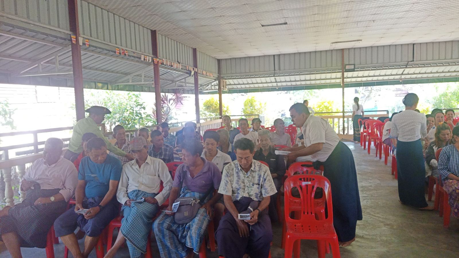 တနင်္သာရီတိုင်းဒေသကြီး၊ တနင်္သာရီမြို့နယ်၌ ၂၀၂၅ ခုနှစ် ပါတီစုံဒီမိုကရေစီအထွေထွေရွေးကောက်ပွဲအပိုင်း (၂)တွင် ပါဝင်သည့် ချောင်းကြီးရပ်ကွက်နှင့် ချောင်းငယ်ရပ်ကွက်ရှိ မဲဆန္ဒရှင်ပြည်သူများအား မြန်မာအီလက်ထရောနစ်မဲပေးစက် (MEVM)ဖြင့် ဆန္ဒမဲပေးခြင်းဆိုင်ရာ အသိပညာပေးခြင်းနှင့်လက်တွေ့စမ်းသပ်မဲပေးခြင်းကို ယနေ့နံနက်ပိုင်းက ချောင်းကြီးရပ်ကွက်နှင့် ချောင်းငယ်ရပ်ကွက် ဓမ္မာရုံများတွင် ကျင်းပခဲ့သည်။