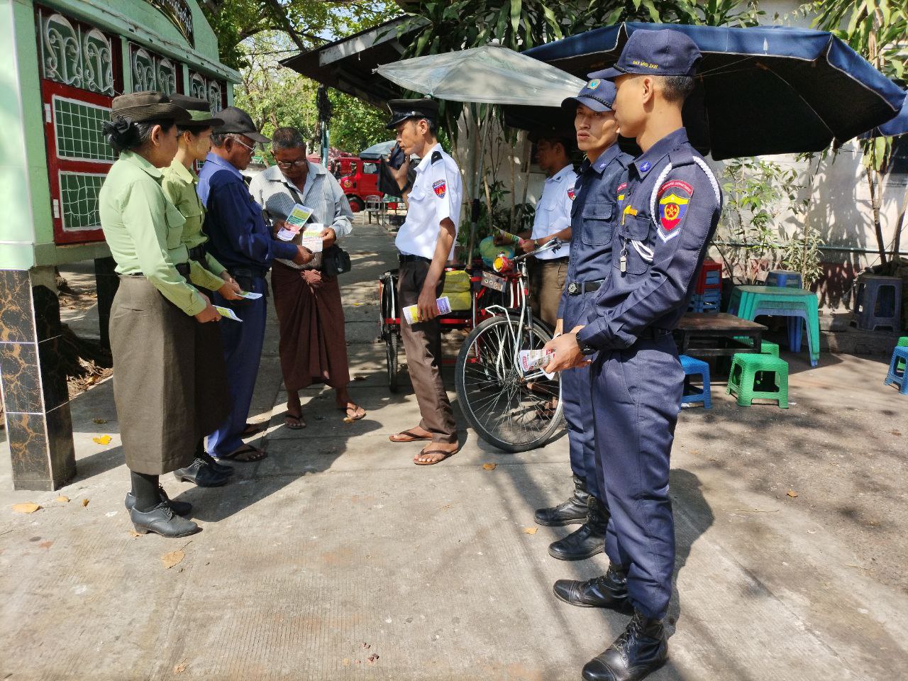 ဒို့အတူတူမဲပေးကြမယ် လက်ကမ်းစာစောင်ဖြန့်ဝေရာတွင် မြို့နယ်စီမံခန့်ခွဲရေးနှင့် အုပ်ချုပ်ရေးကော်မတီဥက္ကဋ္ဌ ဦးဇော်မိုးအောင်၏ ကြီးကြပ်မှုဖြင့် မြို့နယ်အထွေထွေအုပ်ချုပ်ရေးဦးစီးဌာန ဝန်ထမ်းများ၊ မြို့နယ်ပြန်ကြားရေးနှင့်ပြည်သူ့ဆက်ဆံရေးဦးစီးဌာနမှ ဝန်ထမ်းများ၊ မြို့နယ်စည်ပင်သာယာအုပ်ချုပ်ရေးမှူးရုံးမှ ဝန်ထမ်းများ၊ မြို့နယ်လူဝင်မှုကြီးကြပ်ရေးနှင့်ပြည်သူ့အင်အားဝန်ကြီးဌာနမှ ဝန်ထမ်းများနှင့် မြို့နယ်မီးသတ်ဦးစီးဌာနမှ ဝန်ထမ်းများမှ အမှတ် (၃) ရပ်ကွက်အတွင်း အိမ်တိုင်ရာရောက် လိုက်လံဖြန့်ဝေခဲ့ကြကြောင်း သိရသည်။