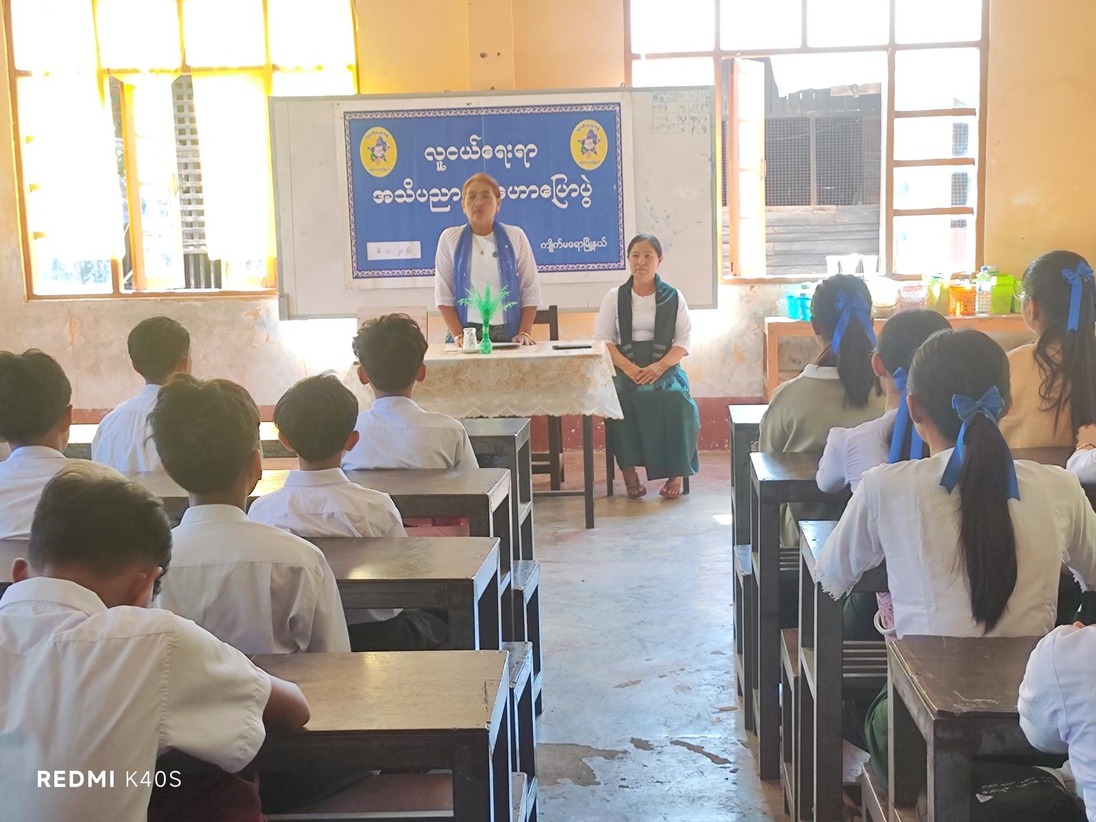 ထို့နောက် ပြန်ကြားရေးနှင့်ပြည်သူ့ဆက်ဆံရေးဦးစီးဌာနက ခင်းကျင်းပြသထားသည့် အသိပညာပေးနံရံကပ်စာစောင်များကို ကျောင်းသား၊ ကျောင်းသူများက လေ့လာကြည်ရူခဲ့ကြသည်။