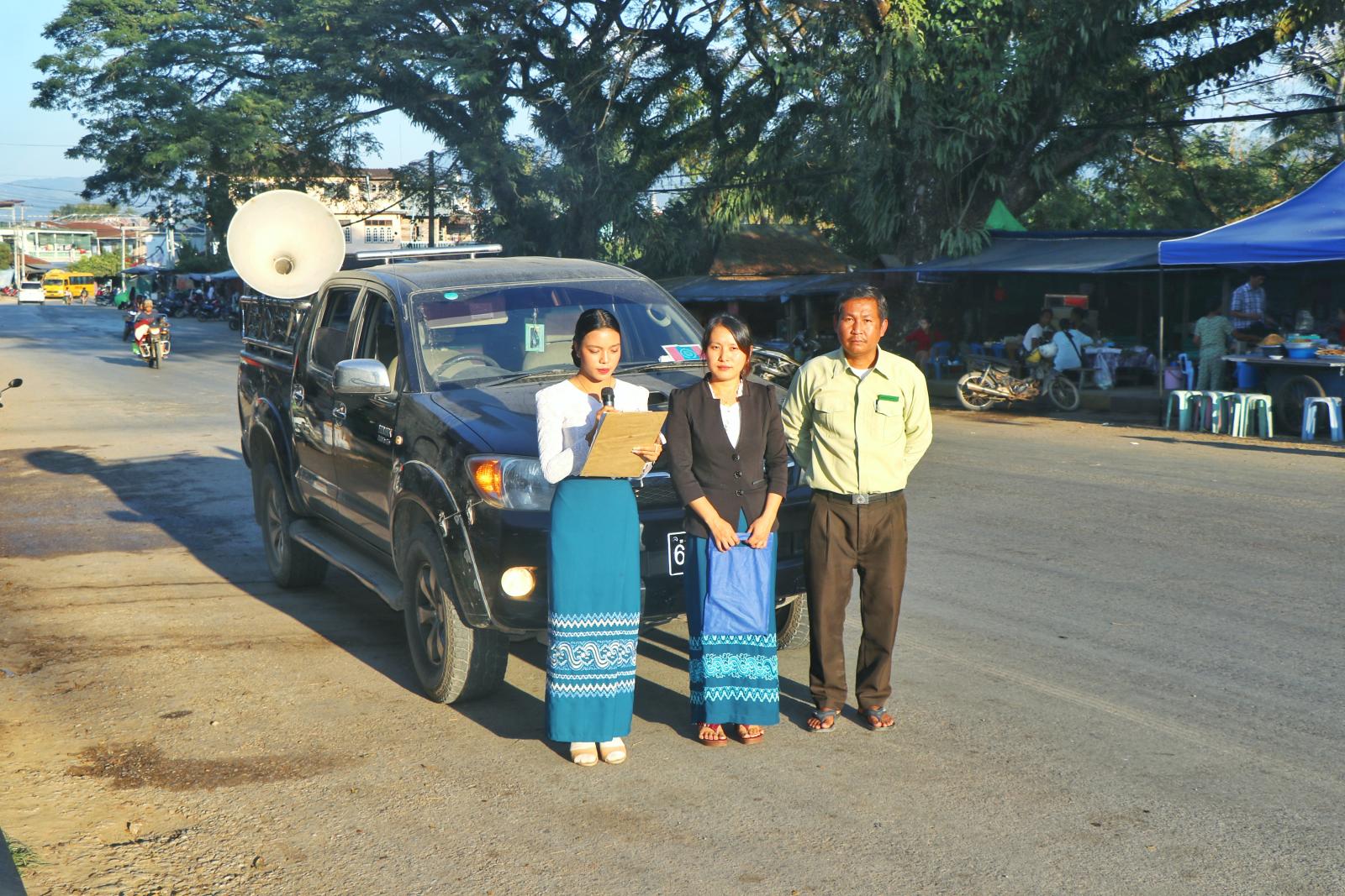ထိုသို့ လှည့်လည်အသိပေးနှိုးဆော်ရာတွင် မြို့နယ်အထွေထွေအုပ်ချုပ်ရေးဦးစီးဌာမှဝန်ထမ်းများ၊ မြို့နယ်ပြန်ကြားရေးနှင့်ပြည်သူ့ဆက်ဆံရေးဦးစီးဌာနမှဝန်ထမ်းများက ဝမ်မိုင်၊ ဈေးတန်းရပ်ကွက်၊ ဟိုးနား၊ ဝမ်ပုံ၊ နားမွန်း၊ နားလီ၊ ယန်းခမ်း၊ ပါပူးကျေးရွာများသို့ လှည့်လည်၍ မြန်မာ၊ ရှမ်း၊ အာခါ၊ လားဟူတိုင်းရင်းသားဘာသာစကားများဖြင့် ရွေးကောက်ပွဲကျင်းပမည့်အခြေအနေများ၊ မဲဆန္ဒရှင်ပြည်သူများမဲရုံများသို့လာရောက်ပါက နိုင်ငံသားစိစစ်ရေးကတ်ပြားယူဆောင်လာရေး၊ မဲဆန္ဒရှင်များလိုက်နာရမည့်အချက်များကို အသံချဲ့စက်ဖြင့် လှည့်လည်အသိပေးနှိုးဆော်ခဲ့ကြောင်း သိရသည်။