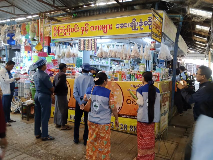 ထိုသို့စစ်ဆေးရာသို့ ဟင်္သာတခရိုင် ပြည်သူ့ကျန်းမာရေးဦးစီးဌာနမှ ခရိုင်ဦးစီးမှူး ဒေါက်တာ နေခြည်ထက်ထက်လင်းအောင်နှင့်ဝန်ထမ်းများ၊ ဟင်္သာတမြို့နယ် စားသုံးသူရေးရာဦးစီးဌာနမှ မြို့နယ်ဦးစီးမှူး ဦးမိုးကျော်၊ ဟင်္သာတမြို့နယ်စည်ပင်သာယာရေးအဖွဲ့မှ ဒုတိယဦးစီးမှူး ဦးလှမင်း၊ ဟင်္သာတမြို့နယ် အစားအစာနှင့်ဆေးဝါးစီမံခန့်ခွဲရေးဦးစီးဌာနမှ ဦးစီးအရာရှိ ဦးအောင်မင်းသူနှင့် တာဝန်ရှိသူများ၊ ဟင်္သာတမြို့မရဲစခန်းမှ ပူးပေါင်းအဖွဲ့သည် ဟင်္သာတမြို့၊ ဥယျာဉ်မြောက်ရပ်ကွက်၊ မန်းဘခိုင်လမ်းရှိ ပဒေသာဈေးနှင့် လမ်းမတော်လမ်းရှိ ဋ္ဌေးဝင်းဈေးအတွင်းရှိ ကုန်စုံဆိုင်များ၊ ငါးပိ/ ငါးခြောက်ဆိုင်များ၊ ဆေးဆိုင်များတွင် အများပြည်သူ စားသုံးရန်/သုံးစွဲရန် မသင့်လျော်သည့် အစား အသောက်များ၊ ဆေးဝါးများ ဖြန့်ချိရောင်းချနေမှု ရှိ/မရှိ စစ်ဆေးခြင်းများ ဆောင်ရွက်ခဲ့ကြသည်။