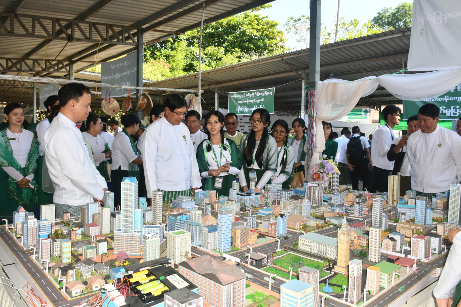 ၎င်းနောက် ရန်ကုန်တိုင်းဒေသကြီး ဝန်ကြီးချုပ် ဦးစိုးသိန်းနှင့်အဖွဲ့က ခင်းကျင်းပြသထားသည့် IT ပြခန်းများ၊ စက်မှုပြခန်း၊ စိုက်ပျိုးရေးပြခန်းနှင့် မွေးမြူရေးပြခန်းစသည့် ပညာရေးပြခန်းများအား လှည့်လည်ကြည့်ရှုအားပေးခဲ့ကြကြောင်း သိရသည်။