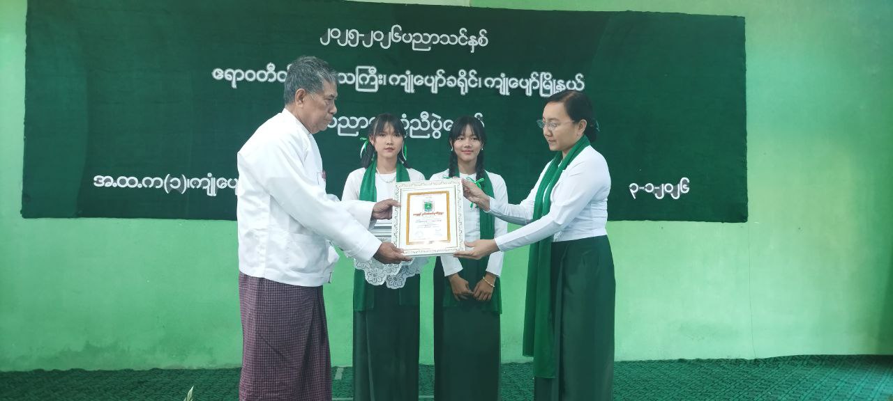 ဆက်လက်၍ ကာယ၊ ဉာဏ ထူးခွန်ဆုရ ကျောင်းသား၊ ကျောင်းသူများအား ဂုဏ်ပြုဆုများချီးမြှင့်ခြင်း၊ သင်ကြားထူးချွန် ဆရာ၊ ဆရာမများအား ဂုဏ်ပြုဆုချီးမြှင့်ခြင်းနှင့် ကျောင်းအတွက် ပံ့ပိုးကူညီသူများအား ဂုဏ်ပြုမှတ်တမ်းလွှာပေးအပ်ခြင်းတို့ကို ဆောင်ရွက်ခဲ့သည်။