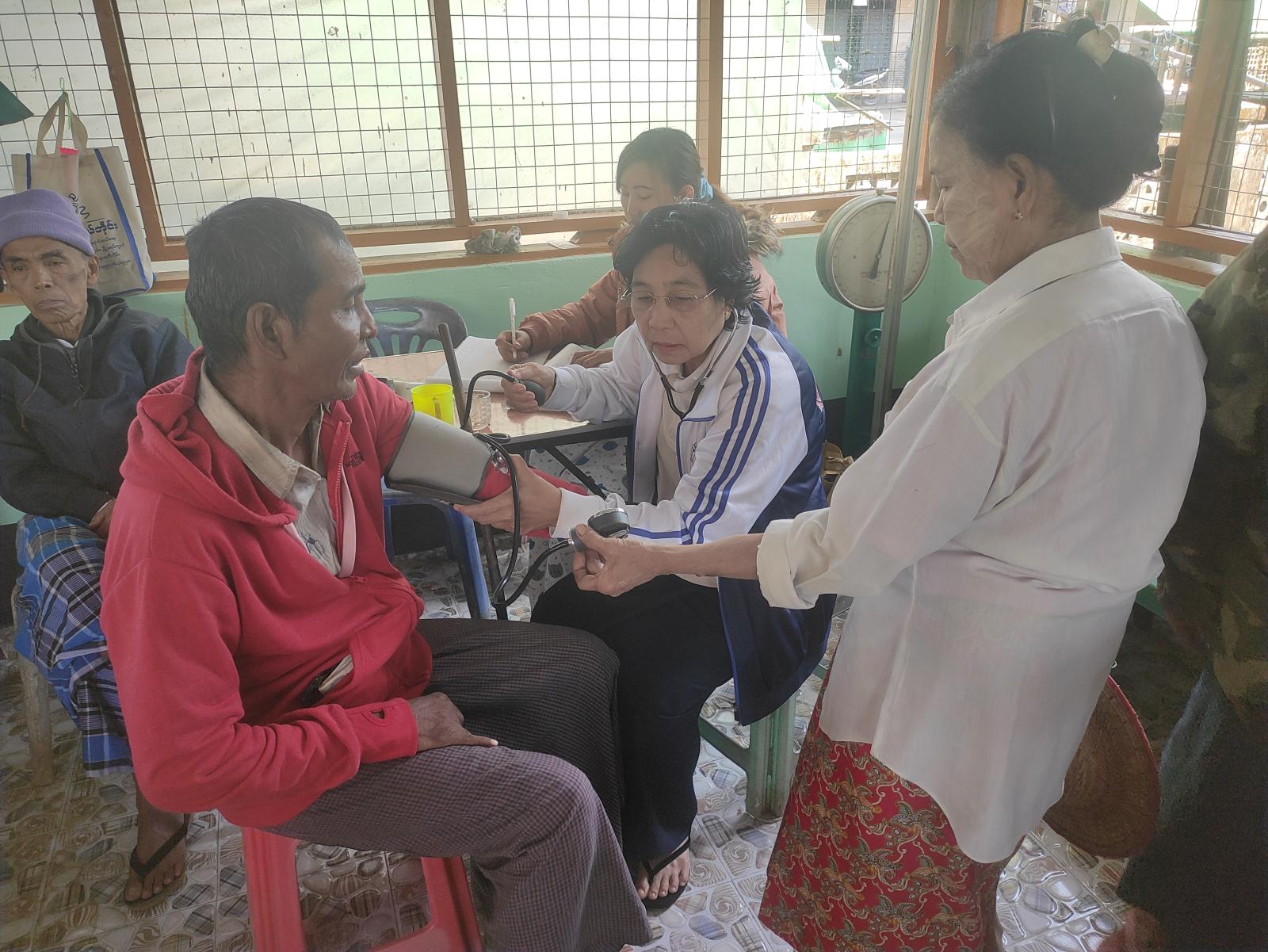 ထိုသို့ဆောင်ရွက်ရာတွင် မြို့အုပ်ချုပ်ရေးမှူး ဦးရဲထက်အောင်၏ ဦးဆောင်မှုဖြင့် မြို့ပြည်သူ့ကျန်းမာရေးဦးစီးဌာနမှ မြို့ဆရာဝန်ဒေါက်တာဦးသန့်ဇော်ထွန်းနှင့်ကျန်းမာရေးဝန်ထမ်းများက အဘိုးအဘွားများအား သွေးပေါင်ချိန်ခြင်း၊ ဆေးပေးခြင်း၊ ဆေးထိုးခြင်းစသည့်လုပ်ငန်းများ ဆောင်ရွက်ခဲ့ကြပြီး မြို့မိခင်နှင့်ကလေးစောင့်ရှောက်ရေးအသင်းနှင့်အမျိုးသမီးရေးရာအဖွဲ့ ဥက္ကဋ္ဌ ဒေါ်နှင်းဝေလွင်နှင့်အလှူရှင်များမှ အလှူငွေများနှင့်အာဟာရများ ကျွေးမွေးလှူဒါန်းခဲ့ကြသည်။