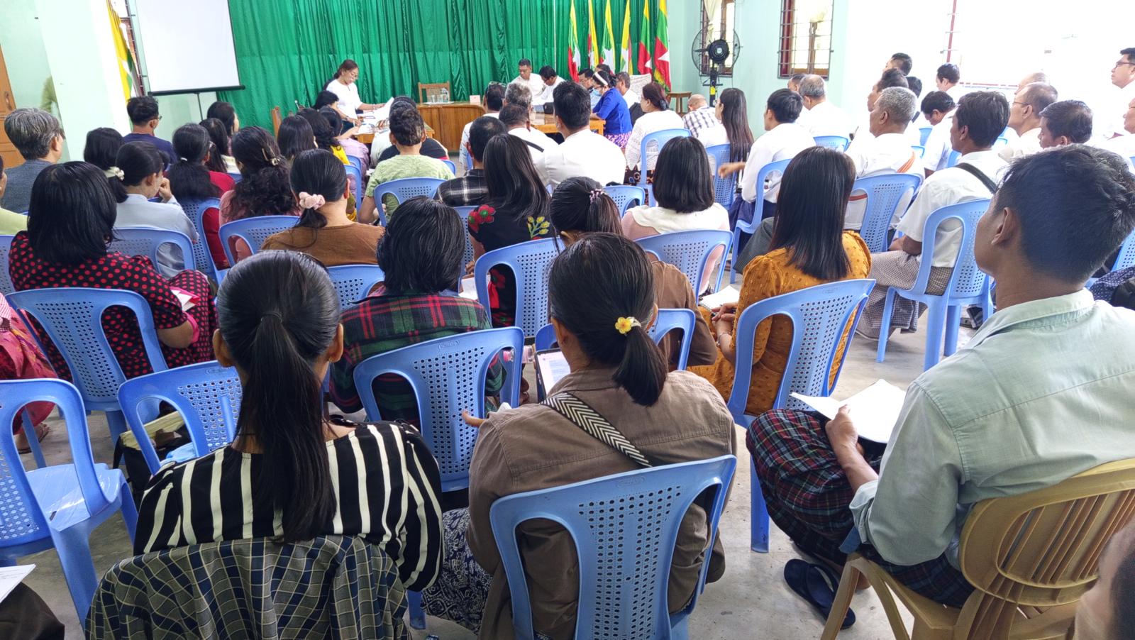 ရန်ကုန်တိုင်းဒေသကြီး၊ ဒဂုံမြို့သစ်ခရိုင်၊ ဒဂုံမြို့သစ်(အရှေ့ပိုင်း)မြို့နယ် အထွေထွေအုပ်ချုပ်ရေးဦးစီးဌာနရုံး အစည်းအဝေးခန်းမတွင် မြို့နယ်ရွေးကောက်ပွဲကော်မရှင်အဖွဲ့ဝင်များ လုပ်ငန်းညှိနှိုင်းအစည်းအဝေးကို ယမန်နေ့နံနက်(၁၀)နာရီက ကျင်းပခဲ့သည်။