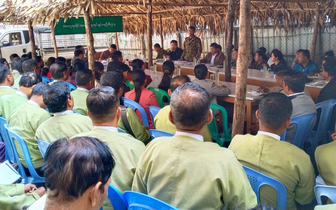 ထို့နောက် မြို့နယ်ရွေးကောက်ပွဲကော်မရှင်အဖွဲ့ခွဲအတွင်းရေးမှူး ဒေါ်နန်းအေးအေးစိုးက မဲပေးစက်များ သတ်မှတ်ရက်အတွင်းထုတ်ယူရန် ဆောင်ရွက်ထားရှိမှုအခြေအနေများနှင့် မဲရုံမှူး၊ ဒုမဲရုံမှူးများနှင့် မဲပေးစက်ကိုင်ဝန်ထမ်းများအား သင်တန်းများပို့ချပေးမှု အခြေအနေများ၊ တတိယအကြိမ် မဲစာရင်းများအား ရပ်ကွက်/ကျေးရွာအုပ်ချုပ်ရေးမှူးများထံသို့ ဖြန့်ဝေပေးမှုအခြေအနေများ ကို တင်ပြဆွေးနွေးခဲ့ပြီး ရပ်ကွက်/ကျေးရွာအုပ်ချုပ်ရေးမှူးများက ပါတီစုံဒီမိုကရေစီအထွေထွေရွေးကောက်ပွဲအပိုင်း(၂) အောင်မြင်စွာကျင်းပနိုင်ရေးအတွက် လိုအပ်ချက်များအား ညှိနှိုင်းဆွေးနွေးတင်ပြကြရာ ခရိုင်စီမံခန့်ခွဲရေးနှင့်အုပ်ချုပ်ရေးကော်မတီဥက္ကဋ္ဌက ဆွေးနွေးတင်ပြချက်များအပေါ် ပေါင်းစပ်ညှိနှိုင်း ဆောင်ရွက်ပေးခဲ့ကြောင်း သိရသည်။