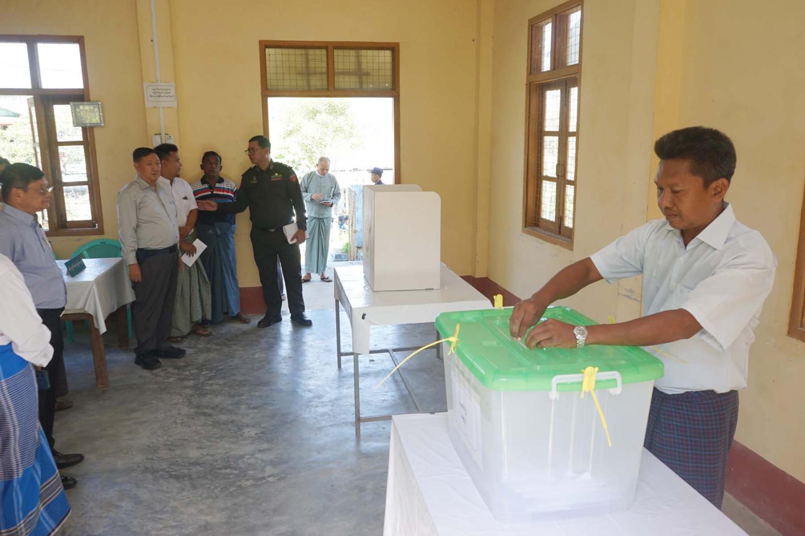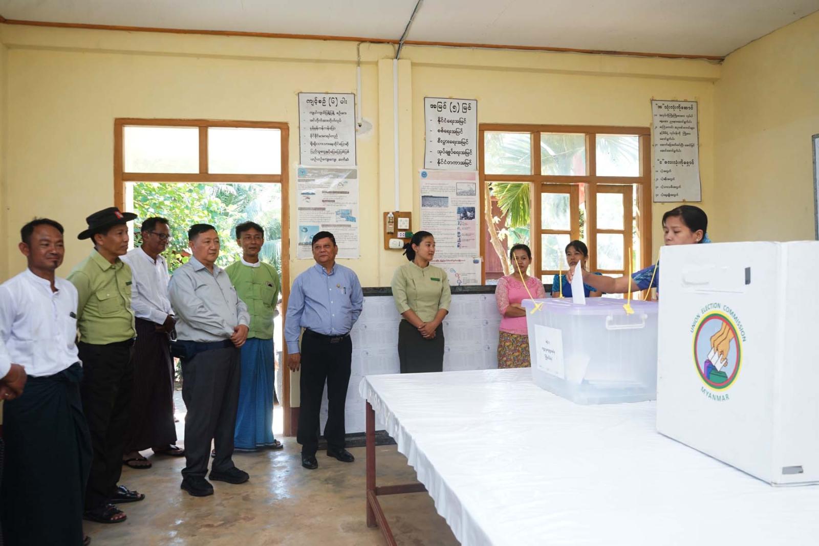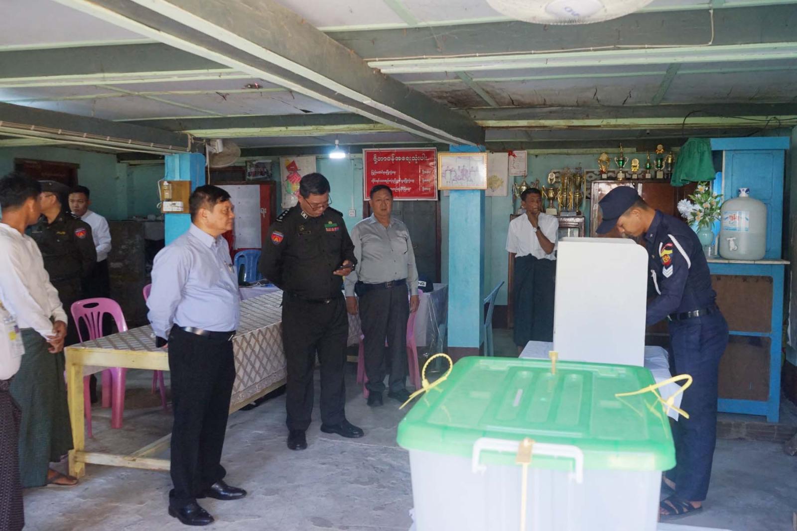 ထို့နောက် ပြည်ထောင်စုရွေးကောက်ပွဲ ကော်မရှင်အဖွဲ့ဝင်နှင့် အဖွဲ့သည် မြို့ပေါ် အမှတ် ၁ ရပ်ကွက်၊ အမှတ် ၃ ရပ်ကွက်နှင့် ကတ္တလူကျေးရွာတို့၌ မြို့နယ်အတွင်းရှိ မဲရုံအသီးသီးတွင် သွားရောက်တာဝန်ထမ်းဆောင်မည့် မဲရုံမှူး၊ ဒုမဲရုံမှူးများနှင့် မဲပေးစက်ကိုင်များ ကြိုတင်ဆန္ဒမဲပေးနေမှုအား ကြည့်ရှုအားပေးခဲ့ကြောင်း သိရသည်။