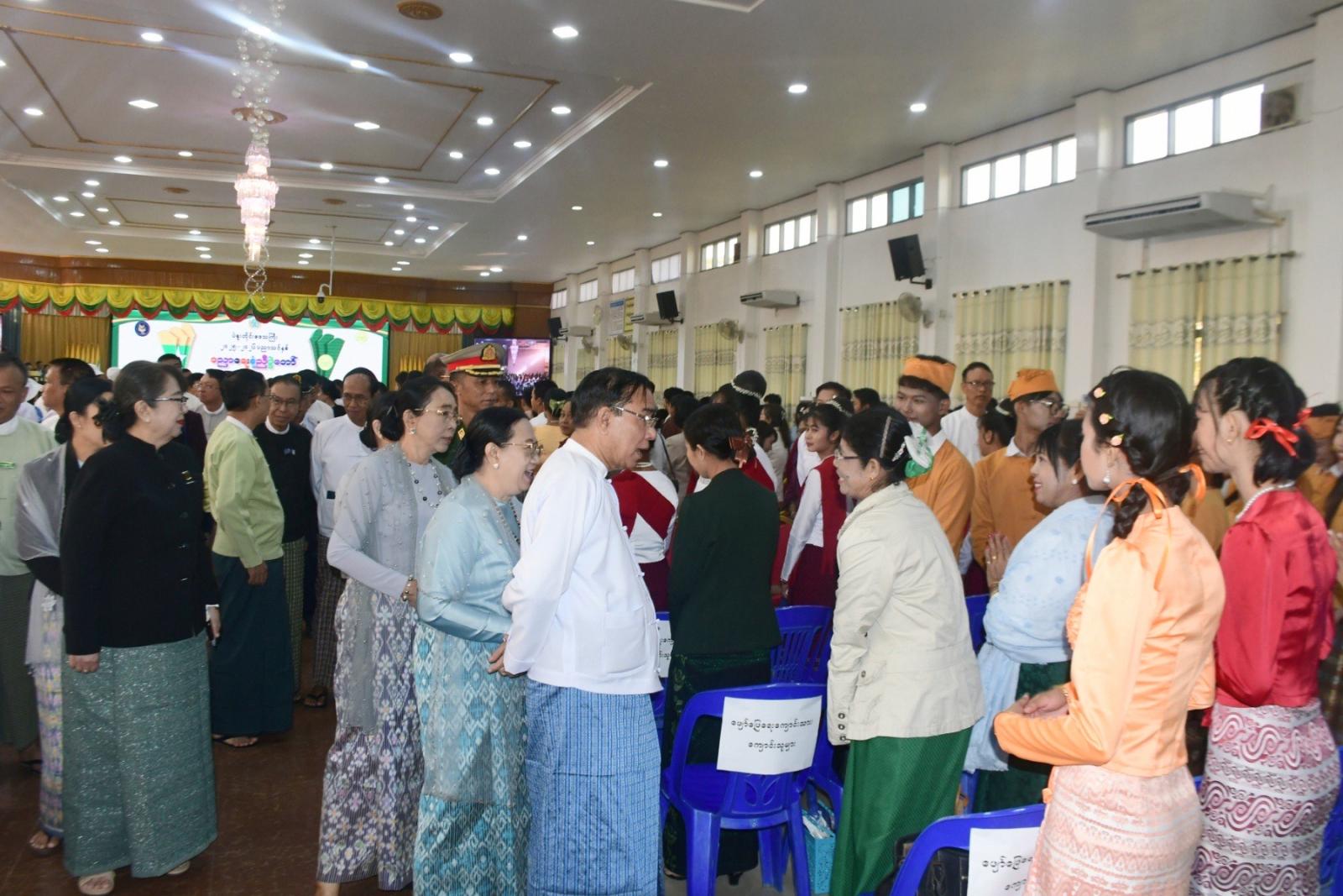 ပဲခူးမြို့၊ မြို့တော်ခန်းမ၌ ဇန်နဝါရီလ(၇)ရက်နေ့၊ နံနက်ပိုင်းက ၂၀၂၅-၂၀၂၆ ပညာသင်ခုနှစ် ပညာရေး စုံညီပွဲတော် အခမ်းအနားကျင်းပပြုလုပ်ခဲ့ရာ ပဲခူးတိုင်းဒေသကြီးဝန်ကြီးချုပ် ဦးမျိုးဆွေဝင်းနှင့် ဇနီးဒေါ်စိုးစိုးသက်တို့ တက်ရောက်ခဲ့ကြသည်။