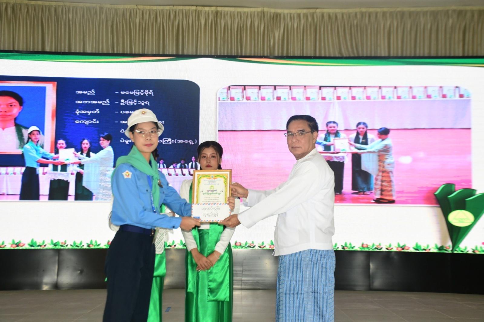 ထို့နောက် ဗဟိုအဆင့်ဆုရရှိသူများအား ပဲခူးတိုင်းဒေသကြီးဝန်ကြီးချုပ် ဦးမျိုးဆွေဝင်းနှင့် ဇနီး ဒေါ်စိုးစိုးသက်တို့က ဂုဏ်ပြုမှတ်တမ်းနှင့် ဂုဏ်ပြုဆုများ အသီးသီးချီးမြှင့်ပေးအပ်ခဲ့ကြသည်။ ၎င်းနောက် အစိုးရအဖွဲ့တာဝန်ရှိသူများက သက်ဆိုင်ရာကဏ္ဍအလိုက် ထူးချွန်ဆုရရှိသူများအား ဆုများအသီးသီး ချီးမြှင့်ပေးအပ်ခဲ့ကြသည်။