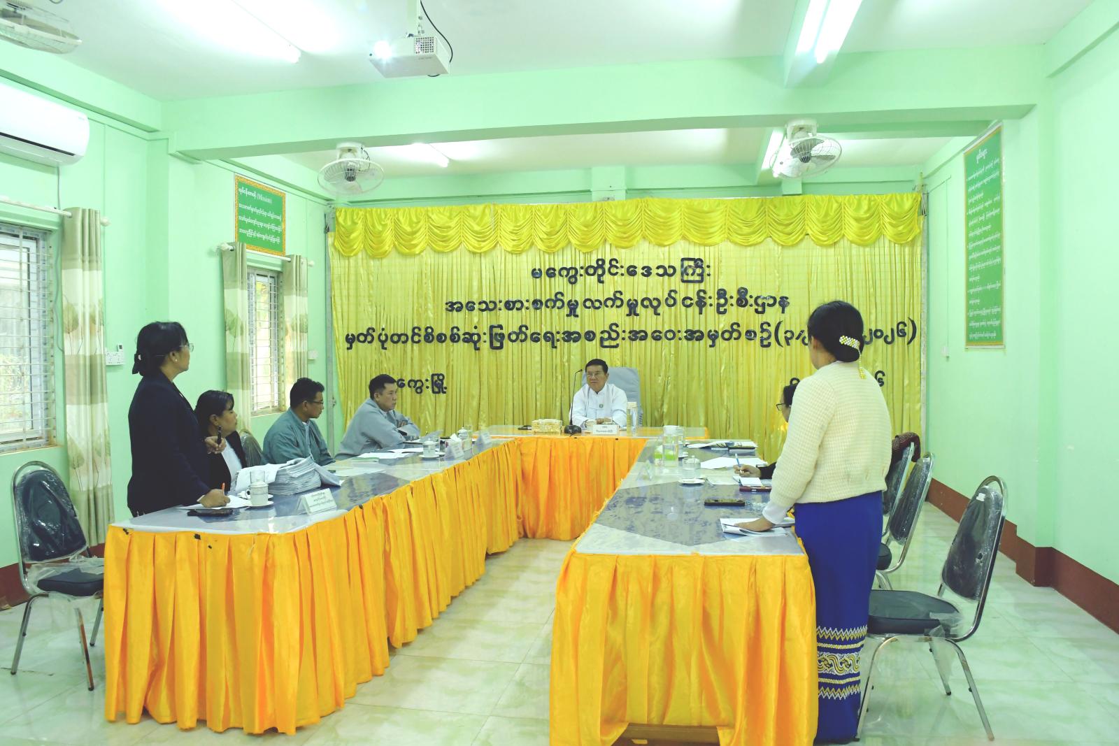 ဆက်လက်၍ တိုင်းဒေသကြီး အသေးစားစက်မှုလက်မှုလုပ်ငန်းဦးစီးဌာန တိုင်းဦးစီးမှူး ဒေါ်စုစုခိုင်က (၃/၂၀၂၅-၂၀၂၆)တွင် လာရောက်လျှောက်ထားလာသော အိမ်တွင်းစက်မှုလက်မှုလုပ်ငန်းရှင်များမှ လုပ်ငန်းမှတ်ပုံတင်ခွင့်ပြုချထားပေးနိုင်ရေးအတွက် လျှောက်ထားလာမှုအခြေအနေအား Power point ဖြင့် အသေးစိတ်ရှင်းလင်းဆွေးနွေးပြောကြားပြီး တက်ရောက်လာသည့် တိုင်းဒေသကြီးအဆင့် လုပ်ငန်းမှတ်ပုံတင်စိစစ်ဆုံးဖြတ်ရေးကော်မတီဝင်များနှင့် ဌာနဆိုင်ရာတာဝန်ရှိသူများက အစည်းအဝေးတွင် တင်ပြလျှောက်ထားလာသော အိမ်တွင်းစက်မှုလက်မှုလုပ်ငန်းရှင်(၇၂)ဦး၏ အချက်အလက်များအား သတ်မှတ်စည်းကမ်းချက်များနှင့်အညီ အထောက်အထားအချက်အလက် ပြည့်စုံမှန်ကန်မှု ရှိ/မရှိ စိစစ်၍လုပ်ငန်းမှတ်ပုံတင်ခွင့်ပြုချထားပေးနိုင်ရေး အတည်ပြုဆုံးဖြတ်ဆောင်ရွက်ပေးခဲ့ကြသည်။