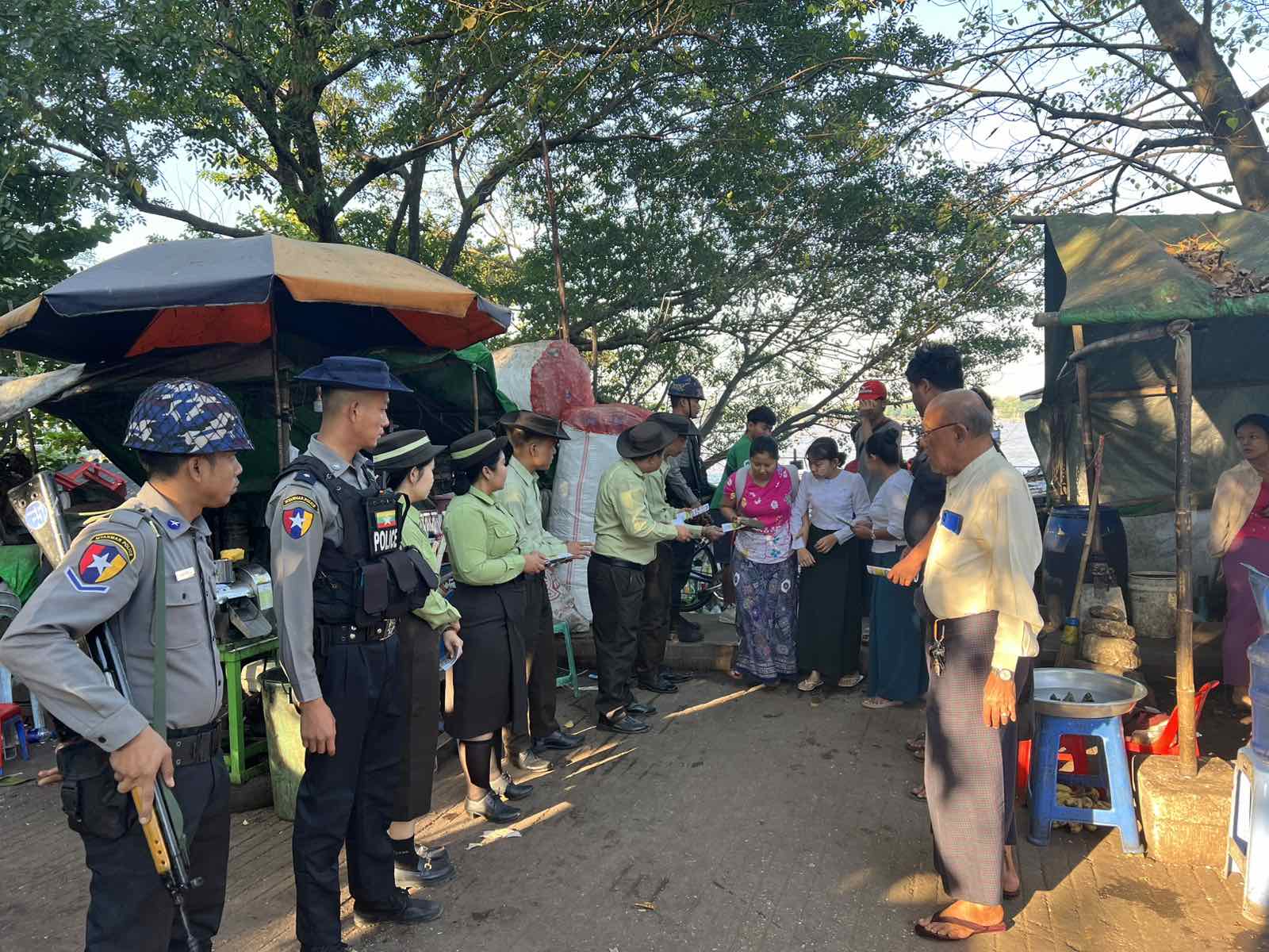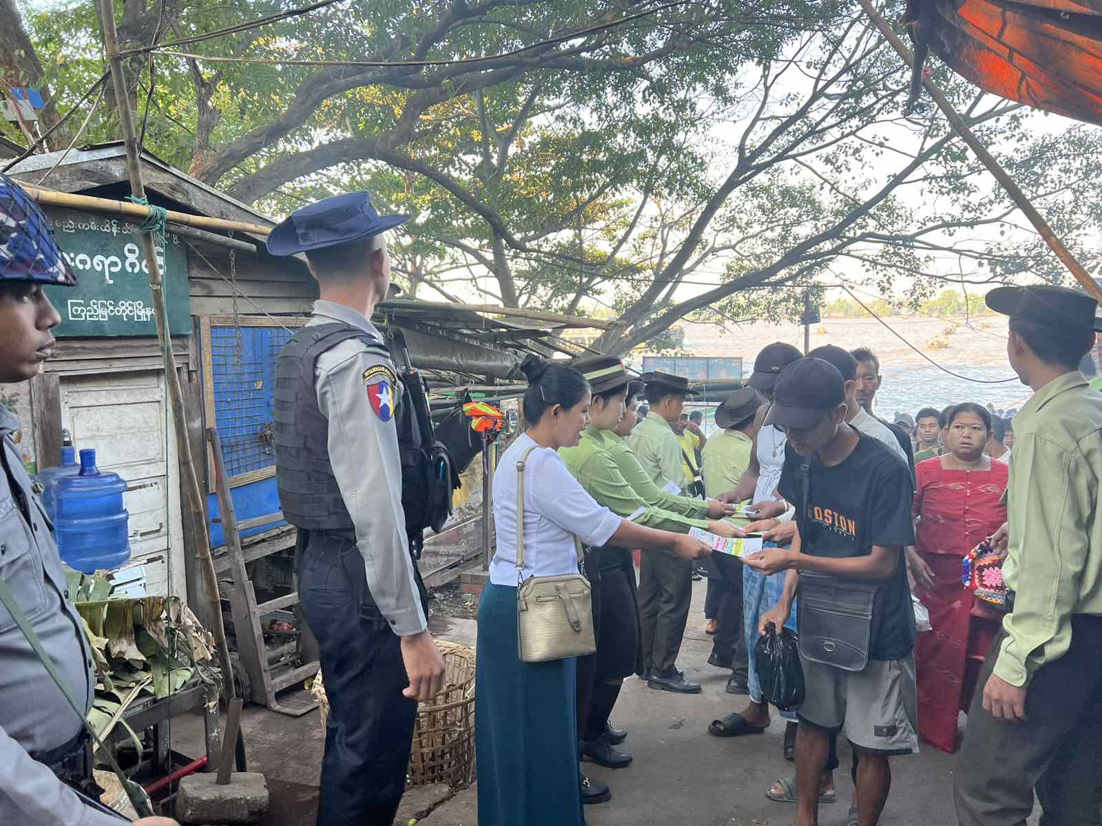 ထိုသို့ ဖြန့်ဝေရာတွင် မြို့နယ်စီမံခန့်ခွဲရေးနှင့် အုပ်ချုပ်ရေးကော်မတီအဖွဲ့ဝင်များ၊ ဌာနဆိုင်ရာများပါဝင်သော ပူးပေါင်းအဖွဲ့က ရွေးကောက်ပွဲအသိပညာပေးလက်ကမ်းစာစောင်များအား ဖြန့်ဝေပေးခြင်းဖြစ်ပြီး “နိုင်ငံသားတိုင်းမဲပေးပိုင်ခွင့် အခွင့်အရေးပြည့်ဝစွာရရှိစေရေး၊ မဲပေးခြင်းသည်နိုင်ငံသားများမှ အမျိုးသားရေးတာဝန်ထမ်းဆောင်ခြင်းဖြစ်သည့်အတွက်” ဆောင်ရွက်ခြင်းဖြစ်ကြောင်း သိရသည်။