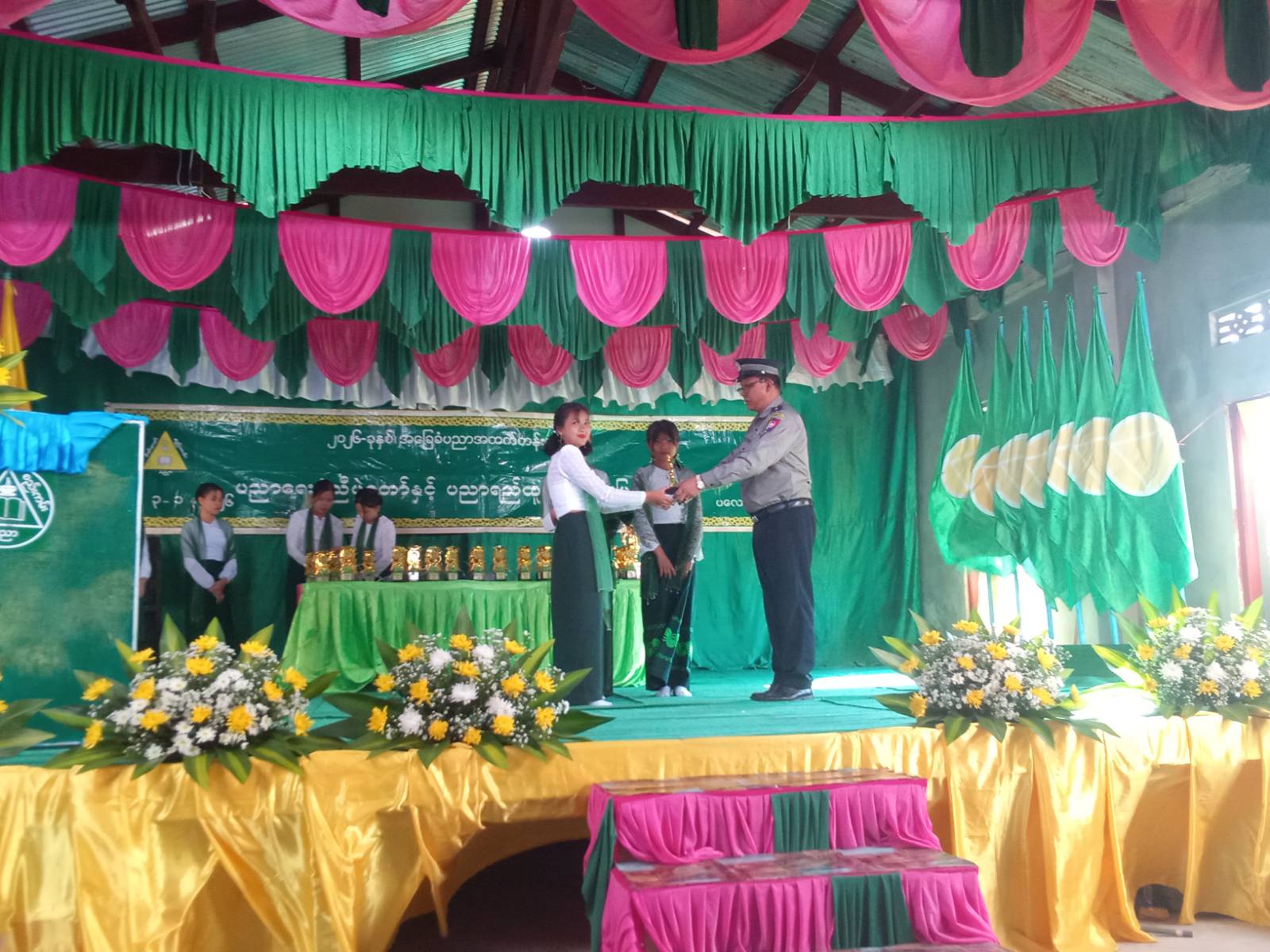ထို့နောက် ၂၀၂၄-၂၀၂၅ ပညာသင်နှစ်တွင် KG အတန်းမှ G-11 အတန်းထိ အောင်မြင်သည့် ကျောင်းသား၊ ကျောင်းသူများနှင့်ကာယ၊ ဉာဏဆုရရှိသည့် ကျောင်းသား၊ ကျောင်းသူများအား မြို့အုပ်ချုပ်ရေးမှူး ဦးဟိန်းမင်းအောင်နှင့် ဌာနဆိုင်ရာများ၊ ရပ်ကွက်အုပ်ချုပ်ရေးမှူးနှင့် ဆရာ၊ ဆရာမများ၊ ကျောင်းကော်မတီဝင်များက ဆုများအသီးသီး ပေးအပ်ချီးမြှင့်ခဲ့ကြကြောင်းနှင့် ပညာရေးစုံညီပွဲတော်တွင် ကျောင်းသား၊ ကျောင်းသူများက အကပဒေသာများနှင့် ကပြဖျော်ဖြေခဲ့ကြကြောင်း သိရသည်။