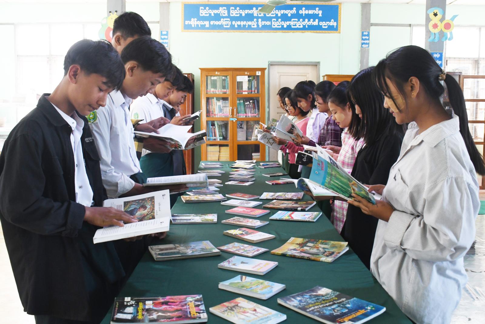 ထို့နောက် မြို့နယ်ပြန်ကြားရေးနှင့်ပြည်သူ့ဆက်ဆံရေးဦးစီးဌာနမှပြသထားသည့် အသိပညာပေးနံရံကပ် စာစောင်များ၊ စာဖတ်ရှိန်မြှင့်တင်ရေးအသိပညာပေးစာအုပ်စာစောင်များကို တက်ရောက်လာသည့် ကျောင်း သား၊ ကျောင်းသူများက လေ့လာကြည့်ရှုခဲ့ကြကြောင်း သိရသည်။