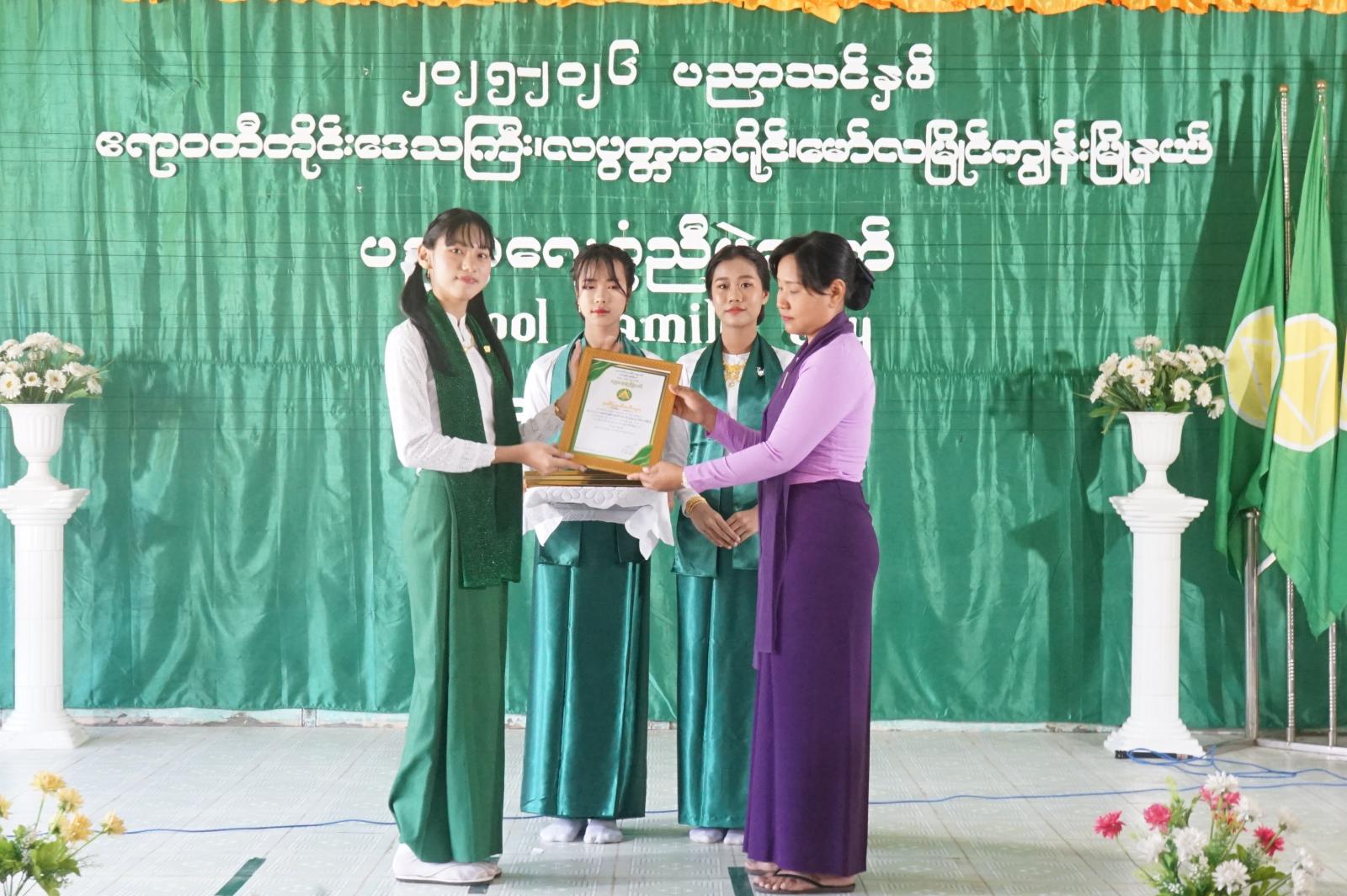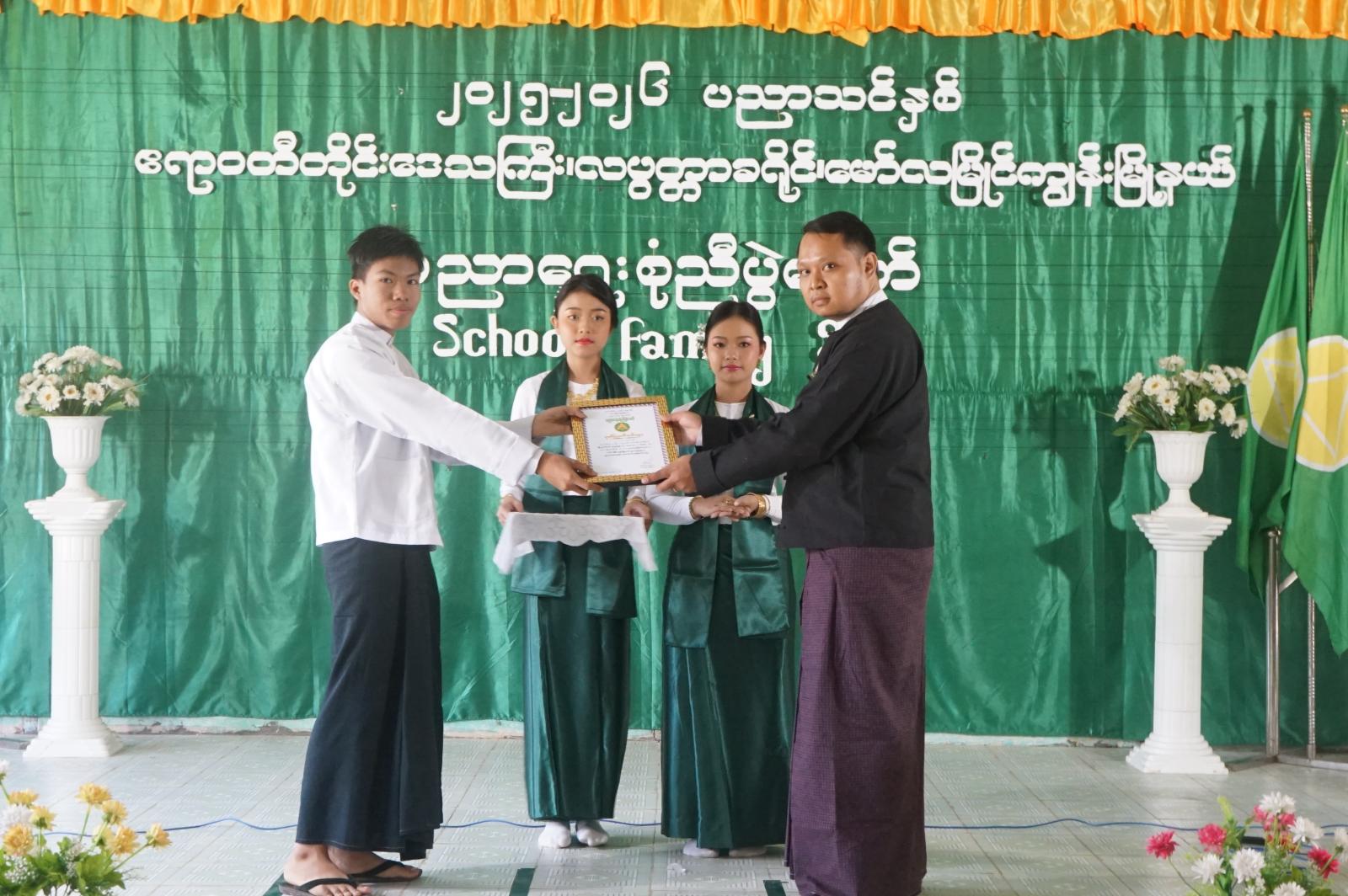 ထို့နောက် အ.ထ.က (၁) ကျောင်းသား/ သူလေးများက “စုံညီပွဲတေယ်တို့နွှဲပျော်” သီချင်းဖြင့်ကပြဖျော်ဖြေခဲ့ကြပြီး စာစီစာကုံး၊ ပန်းချီ၊ ကဗျာ၊ အင်္ဂလိပ်စာစွမ်းရည်၊ သင်္ချာစွမ်းရည်ပြိုင်ပွဲများ၊ လူရည်ထူးချွန်ဆုများ ရရှိသူများအား မြို့နယ်စီမံခန့်ခွဲရေးနှင့် အုပ်ချုပ်ရေးကော်မတီဥက္ကဋ္ဌ ဦးခင်မောင်ဦးနှင့်အဖွဲ့ဝင်များ၊ အမျိုးသမီးရေးရာနှင့် မိခင်နှင့် ကလေးစောင့်ရှောက်ရေးအသင်းအဖွဲ့ဝင်များက ဆုရကျောင်းသား/ သူများအား ဆုအသီးသီးချီးမြှင့်ပေးခဲ့ကြပြီး ကျောင်းသား/ ကျောင်းသူလေးများက “မန္တလာကိုကို”၊ “မှုံရွှေရည်”၊ “မောတို့ပြည်နယ်ရှမ်း”၊ “ပန်းကမ္ဘာမျှော်စင်”၊ “လောကအားမာန်”နှင့် “ပြည်မြန်မာ” စသည့် တေးသီးချင်များဖြင့် သရုပ်ပြ၊ ကပြဖျော်ဖြေခဲ့ကြကြောင်း သိရသည်။