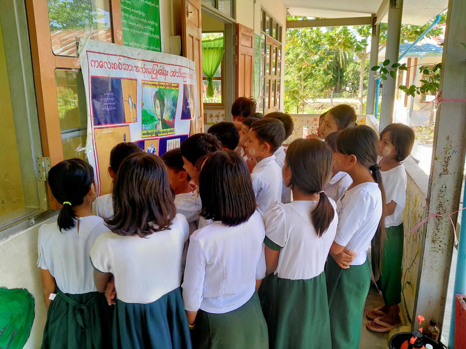ထို့နောက်ကျောင်းအုပ်ဆရာမကြီးက ကျေးဇူးတင်စကားပြောကြားပြီး ပြန်ကြားရေးနှင့်ပြည်သူ့ဆက်ဆံရေးဦးစီးဌာနမှ ကျောင်းသား၊ ကျောင်းသူများ ဖတ်ရှုလေ့လာနိုင်ရန် ရုပ်ပြပုံပြင်များ၊ စာစောင်များစသည့် ကလေးများအသိပညာတိုးပွားရေး စာအုပ်စာပေများ၊ စာဖတ်ရှိန်မြှင့်တင်ရေးတို့နှင့်ပတ်သက်သည့် ဆောင်းပါး၊ ကဗျာ၊ ကာတွန်း သိမှတ်ဖွယ်ရာများစသည့် အသိပညာပေးနံရံကပ်စာစောင်များ ဓာတ်ပုံများကို ခင်းကျင်း ပြသခဲ့ရာ ကျောင်းသား၊ ကျောင်းသူများက စိတ်ပါ၀င်စားစွာ ကြည့်ရှုလေ့လာခဲ့ကြောင်း သိရသည်။