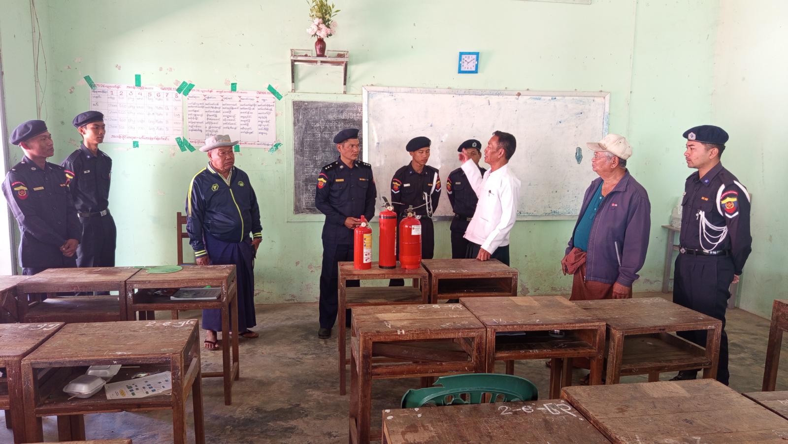 ထိုသို့ဆောင်ရွက်ရာတွင် မြို့နယ်မီးသတ်ဦးစီးဌာနမှ မြို့နယ်မီးသတ်ဦးစီးမှူး ဦးစီးအရာရှိ ဦးမျိုးသူအောင်နှင့်တပ်ဖွဲ့ဝင်(၆)ဦး၊ မြို့နယ်စီမံခန့်ခွဲရေးနှင့်အုပ်ချုပ်ရေးကော်မတီအဖွဲ့ဝင် ဦးကျော်သန်းစိန်၊ အရန်မီးသတ်မှတပ်ဖွဲ့ဝင်(၃)ဦးတို့က မြို့ပေါ်ရပ်ကွက်များရှိ မဲရုံပြုလုပ်မည့် အခြေခံပညာစာသင်ကျောင်းများတွင် မီးငြိမ်းသတ်ရေးပစ္စည်းများနှင့် မီးသတ်ဆေးဘူးများထားရှိခြင်း ရှိ/မရှိ လိုက်လံစစ်ဆေးခြင်း၊ လျှပ်စစ်ဝါယာကြိုးသွယ်တန်းထားရှိမှုအခြေအနေများစစ်ဆေးခြင်း၊ မဲရုံပတ်ဝန်းကျင် မီးလောင်လွယ်သည့်ပစ္စည်းများနှင့် အမှိုက်သရိုက်များမရှိစေရေး ကြိုတင်ပြင်ဆင်ဆောင်ရွက်ထားရှိမှုအခြေအနေများအား လိုက်လံစစ်ဆေး ဆောင်ရွက်ခဲ့ကြကြောင်း သိရသည်။