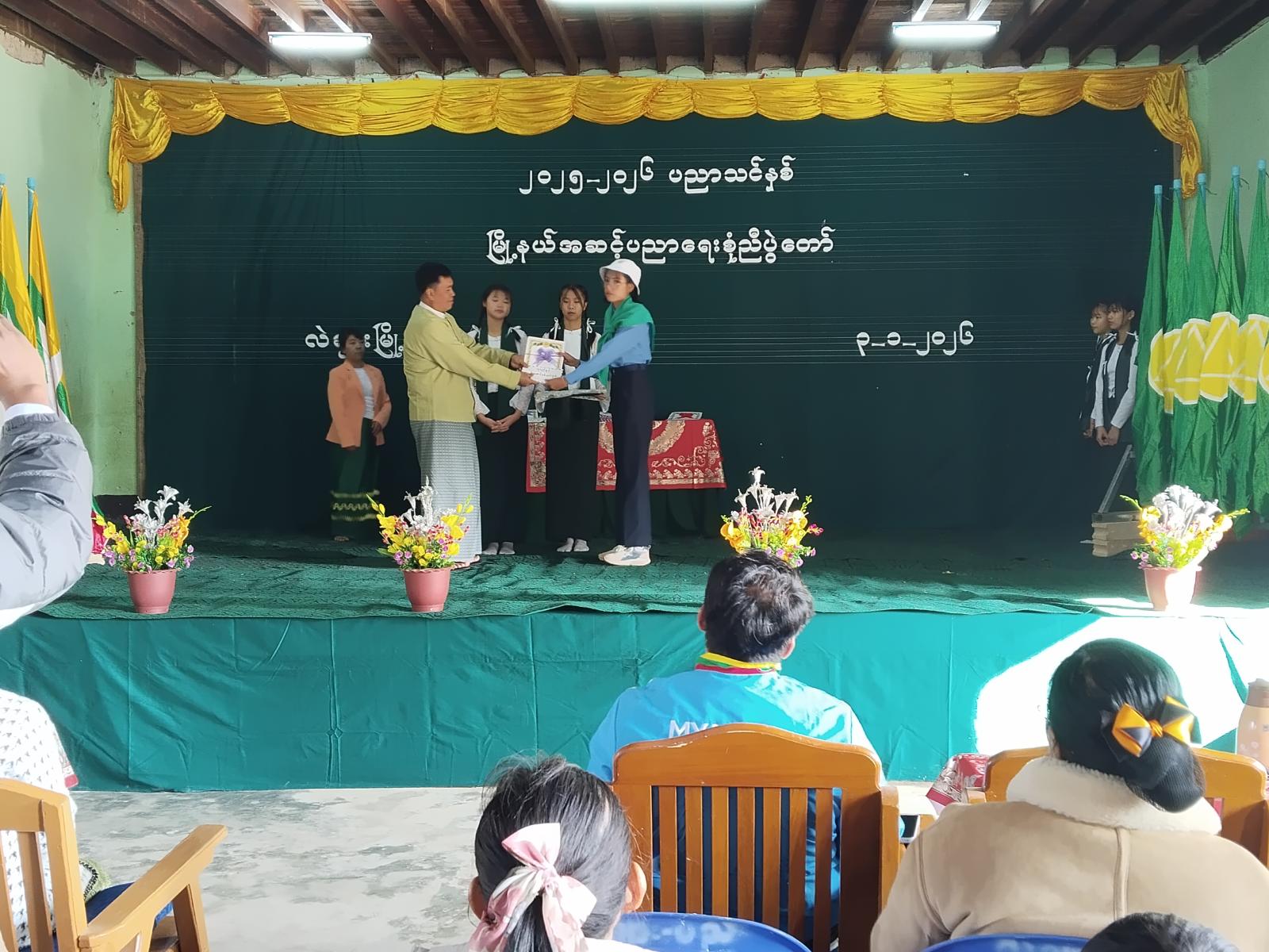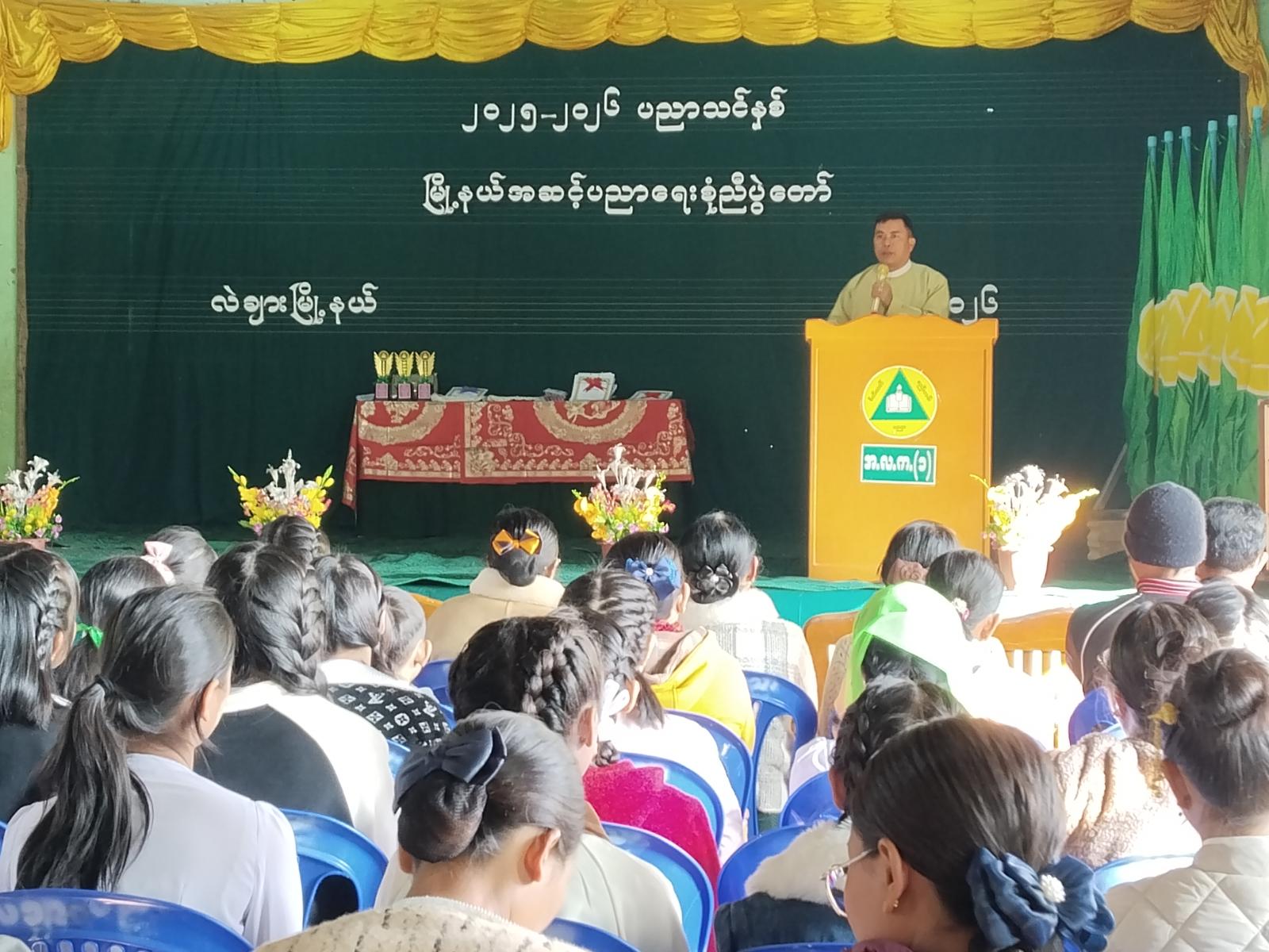 ရှေးဦးစွာ ကျောင်းသား၊ကျောင်းသူလေးများက “စုံညီပွဲတော် ဒို့နွှဲပျော်” သီချင်းဖြင့် အခမ်းအနားကိုဖွင့်လှစ်ကြသည်။ ထို့နောက် မြို့နယ်စီမံခန့်ခွဲရေးနှင့်အုပ်ချုပ်ရေးကော်မတီဥက္ကဋ္ဌ ဦးနန်းတင့်က အမှာစကားပြောကြားပြီး မြို့နယ်ပညာရေးမှူးက တစ်နှစ်တာကျောင်းလုပ်ငန်း များအား ရှင်းလင်းဆွေးနွေးခဲ့ပြီး၂၀၂၄-၂၀၂၅ ပညာသင်နှစ်တွင် ဆုရရှိခဲ့သော ကျောင်းသား၊ ကျောင်းသူများအား တာဝန်ရှိသူများက ဆုများအသီးသီးချီးမြှင့်ခဲ့ကြသည်။ ဆုချီးမြှင့်ပွဲအပြီးတွင် ကျောင်းသား၊ကျောင်းသူများက အကပဒေသာများဖြင့် ကပြဖျော်ဖြေတင်ဆက်ခဲ့ကြသည်။