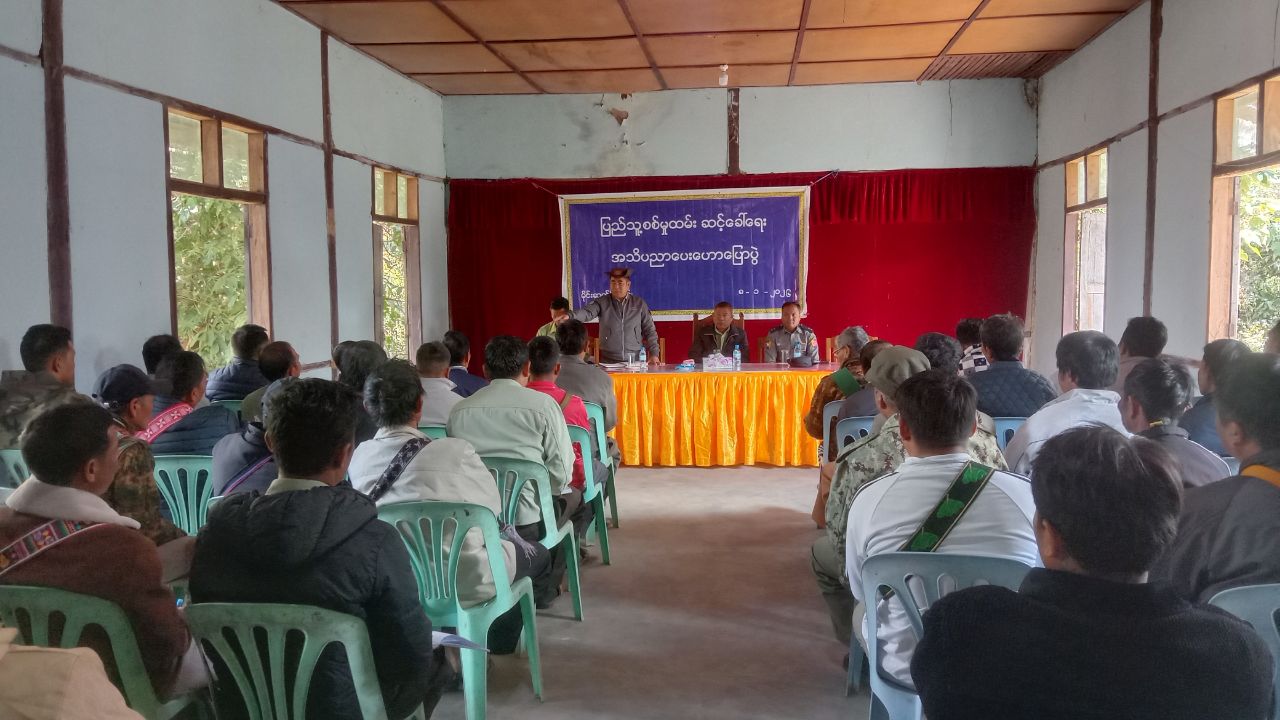 အဆိုပါ ဟောပြောပွဲတွင် မြို့နယ်ပြည်သူ့စစ်မှုထမ်းဆင့်ခေါ်ရေးအဖွဲ့ဥက္ကဋ္ဌ ဦးအားလွန်နှင့် ခရိုင်ပြည်သူ့စစ်မှုထမ်းဆင့်ခေါ်ရေးအဖွဲ့ အတွင်းရေးမှူး ဦးဝင်းဌေးတို့က ပြည်သူ့စစ်မှုထမ်းဥပဒေအကြောင်းအရာများနှင့် ပြည်သူ့စစ်မှုထမ်းရည်ရွယ်ချက်များနှင့်ပက်သက်၍ သိရှိနားလည်နိုင်စေရန် ရှင်းလင်းဟောပြောခဲ့ကြောင်း သိရသည်။