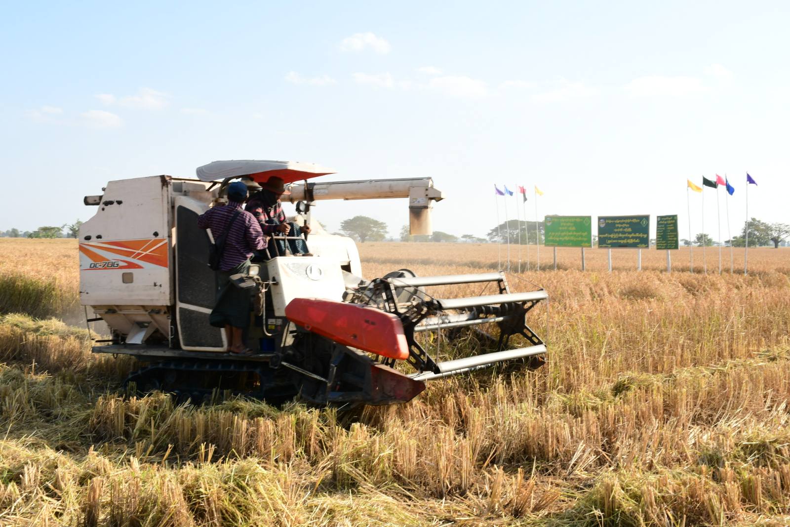 ဧရာဝတီတိုင်းဒေသကြီး၊ ကျုံပျော်ခရိုင်၊ ရေကြည်မြို့နယ်၊ နွားရေတိုက်ကျေးရွာတွင် ၂၀၂၅-၂၀၂၆ ခုနှစ်၊ ဧရာဝတီ(ရေကြည်) မိုးစပါးဓာတုကင်းလွတ်ပေါ်ဆန်းမွှေး (၂၅၀)ဧက အထူးဇုန် စံပြစိုက်ခင်းစံကွက်ရိတ်သိမ်းပွဲအခမ်းအနားကို ယမန်နေ့ညနေပိုင်းက တောင်သူဦးကြည်ခိုင်စိုး၏ စိုက်ဧက(၅၀)ဧကတွင် ပြုလုပ်ခဲ့ရာ စံကွက်ရိတ်သိမ်းပွဲသို့ တိုင်းဒေသကြီးဝန်ကြီးချုပ် ဦးတင်မောင်ဝင်းသည် တာဝန်ရှိသူများနှင့်အတူ တက်ရောက်ကြည့်ရှုအားပေးခဲ့သည်။
