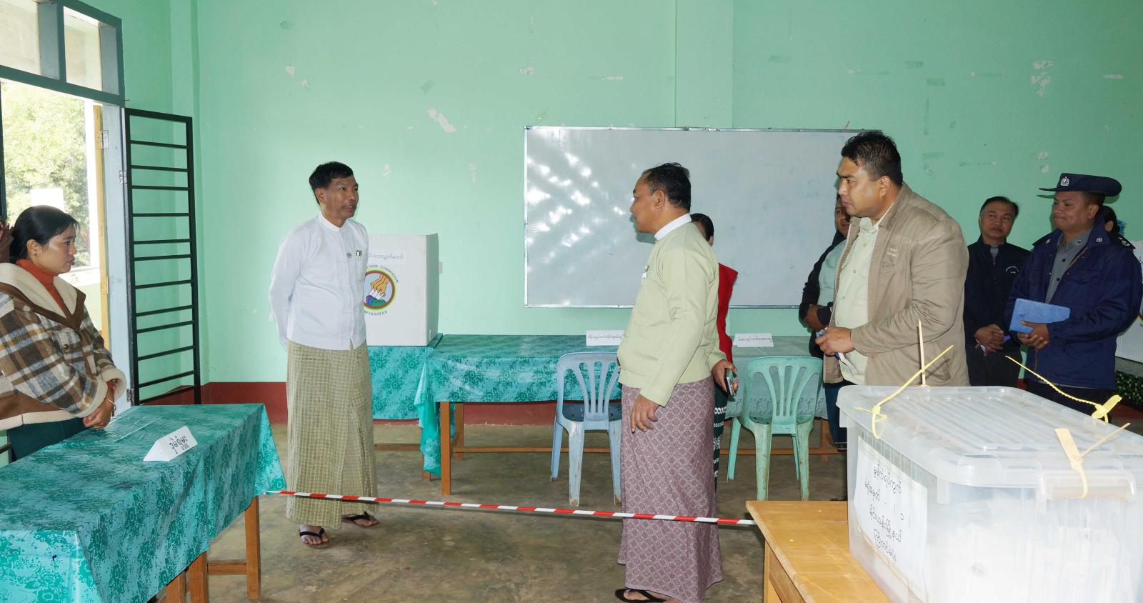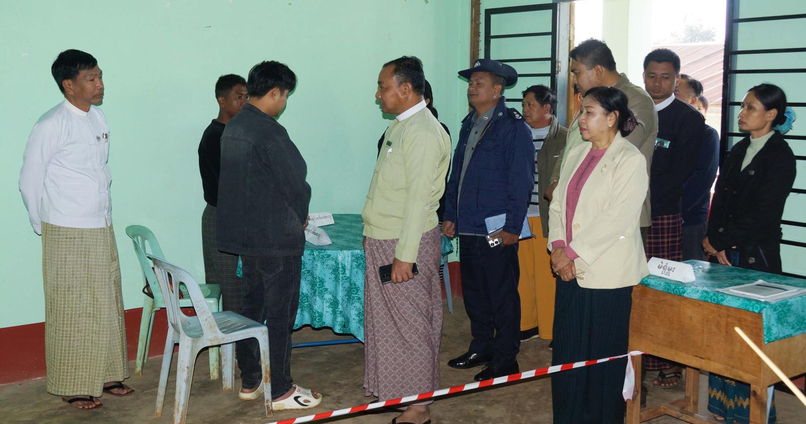 ရှေးဦးစွာ ရှမ်းပြည်နယ်အစိုးရအဖွဲ့ လူမှုရေးရာဝန်ကြီး ဦးမင်းမင်းလွင်သည် မြို့နယ်အထွေထွေအုပ်ချုပ်ရေးဦးစီးဌာန၊ အစည်းအဝေးခန်းမ၌ ၂၀၂၆ ခုနှစ်၊ ဇန်နဝါရီ ၁၁ ရက်နေ့တွင် ကျင်းပမည့် ပါတီစုံဒီမိုကရေစီအထွေထွေ ရွေးကောက်ပွဲအပိုင်း(၂) အောင်မြင်စွာကျင်းပနိုင်ရေးအတွက် တာဝန်ရှိသူများကို ရွေးကောက်ပွဲဆိုင်ရာလုပ်ငန်းစဉ်များအား အသေးစိတ်လမ်းညွှန်မှာကြားပြီး ခရိုင်စီမံခန့်ခွဲရေးနှင့်အုပ်ချုပ်ရေးကော်မတီဥက္ကဋ္ဌ ဦးလင်းသန့်နှင့် အဖွဲ့ဝင်များ၊ မြို့နယ်စီမံခန့်ခွဲရေးနှင့် အုပ်ချုပ်ရေးကော်မတီဥက္ကဋ္ဌ ဦးအောင်ဇင်ဦးနှင့် အဖွဲ့ဝင်များ၊ ခရိုင်/မြို့နယ်ရွေးကောက်ပွဲ ကော်မရှင်အဖွဲ့ခွဲမှ တာဝန်ရှိသူများနှင့်အတူ မွန်ကဲရပ်ကွက်၊ မဲရုံအမှတ်(၁)၊ ဝိန်းလိတ်ရပ်ကွက်၊ မဲရုံအမှတ်(၁)၊ ရာပြည့်ခန်းမနှင့် မိုင်းလွေကျေးရွာအုပ်စု မဲရုံအမှတ်(၁)မဲရုံများကို သတ်မှတ်ချက်များနှင့်အညီ ကြိုတင်ပြင်ဆင် ဆောင်ရွက်ထားရှိမှုအခြေအနေများအား ကြည့်ရှုစစ်ဆေးပြီး မဲရုံမှူး၊ ဒုတိယမဲရုံမှူးနှင့် မဲရုံအဖွဲ့ဝင်များ၏ ဆောင်ရွက်ရမည့် လုပ်ငန်းတာဝန်အဆင့်ဆင့်တို့ကို စနစ်တကျ ကြိုးစားဆောင်ရွက်ရေး အသေးစိတ်လမ်းညွှန်မှာကြားခဲ့ကြောင်း သိရသည်။