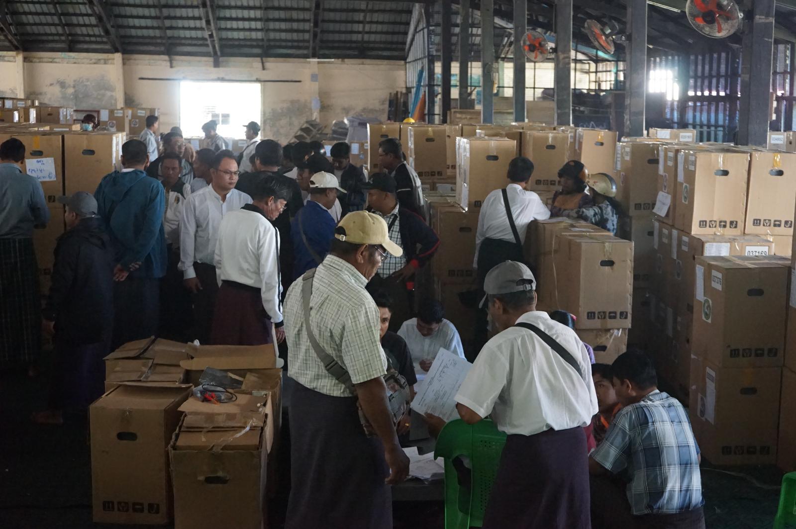 ဧရာဝတီတိုင်းဒေသကြီး၊ ဖျာပုံခရိုင်၊ ဘိုကလေးမြို့နယ်တွင် ပါတီစုံဒီမိုကရေစီအထွေထွေရွေးကောက်ပွဲအား ဇန်နဝါရီ(၁၁)ရက်နေ့တွင် ကျင်းပဆောင်ရွက်မည်ဖြစ်ရာ ဘိုကလေးမြို့နယ်အတွင်းရှိ မဲရုံ(၂၆၅)ရုံတွင် အသုံးပြုမည့်မဲပေးစက်များနှင့် ဆက်စပ်ပစ္စည်းများအား ဘိုကလေးမြို့လယ်ကျက်သရေဆောင် ချိုကြည်သာသနာ့ဗိမာန်အတွင်း ယနေ့နံနက်(၈)နာရီမှ စတင်၍ တာဝန်ရှိသူများမှ ရပ်ကွက်/ကျေးရွာအုပ်စု ကော်မရှင်အဖွဲ့ခွဲများထံ စနစ်တကျထုတ်ပေးခဲ့သည်။
