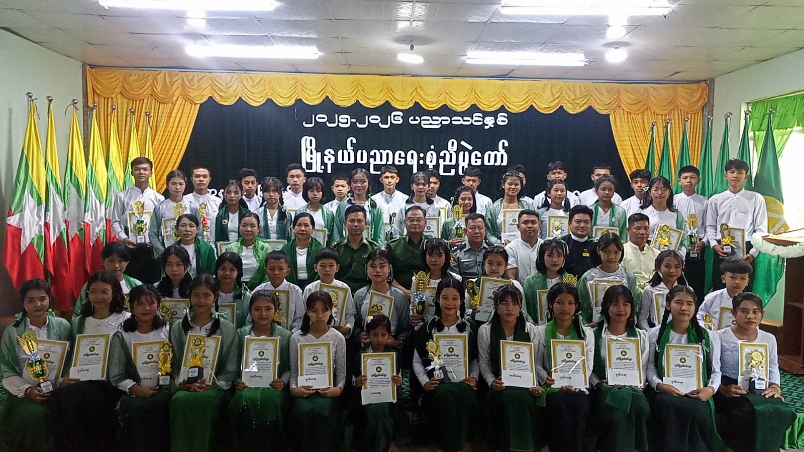 ထို့နောက် ၂၀၂၄-၂၀၂၅ ပညာသင်နှစ်တွင် ထူးချွန်ကျောင်းများ၊ လူရည်ချွန်ဆုနှင့် ထူးချွန်ဆု ရရှိသော ကျောင်းသား၊ ကျောင်းသူများအား၊ အမှတ် (၃) စစ်ဗျူဟာမှူး ဗိုလ်မှူးကြီးမျိုးမင်းသူ၊ မြို့နယ်စီမံခန့်ခွဲရေးနှင့်အုပ်ချုပ်ရေးကော်မတီဥက္ကဋ္ဌနှင့်အဖွဲ့ဝင်များ၊ မြို့နယ်ပညာရေးမှူးနှင့် မြို့နယ်အဆင့်ဌာနဆိုင်ရာ အကြီးအကဲများက ဆုများကို အသီးသီးပေးအပ်ချီးမြှင့်ကြသည်။