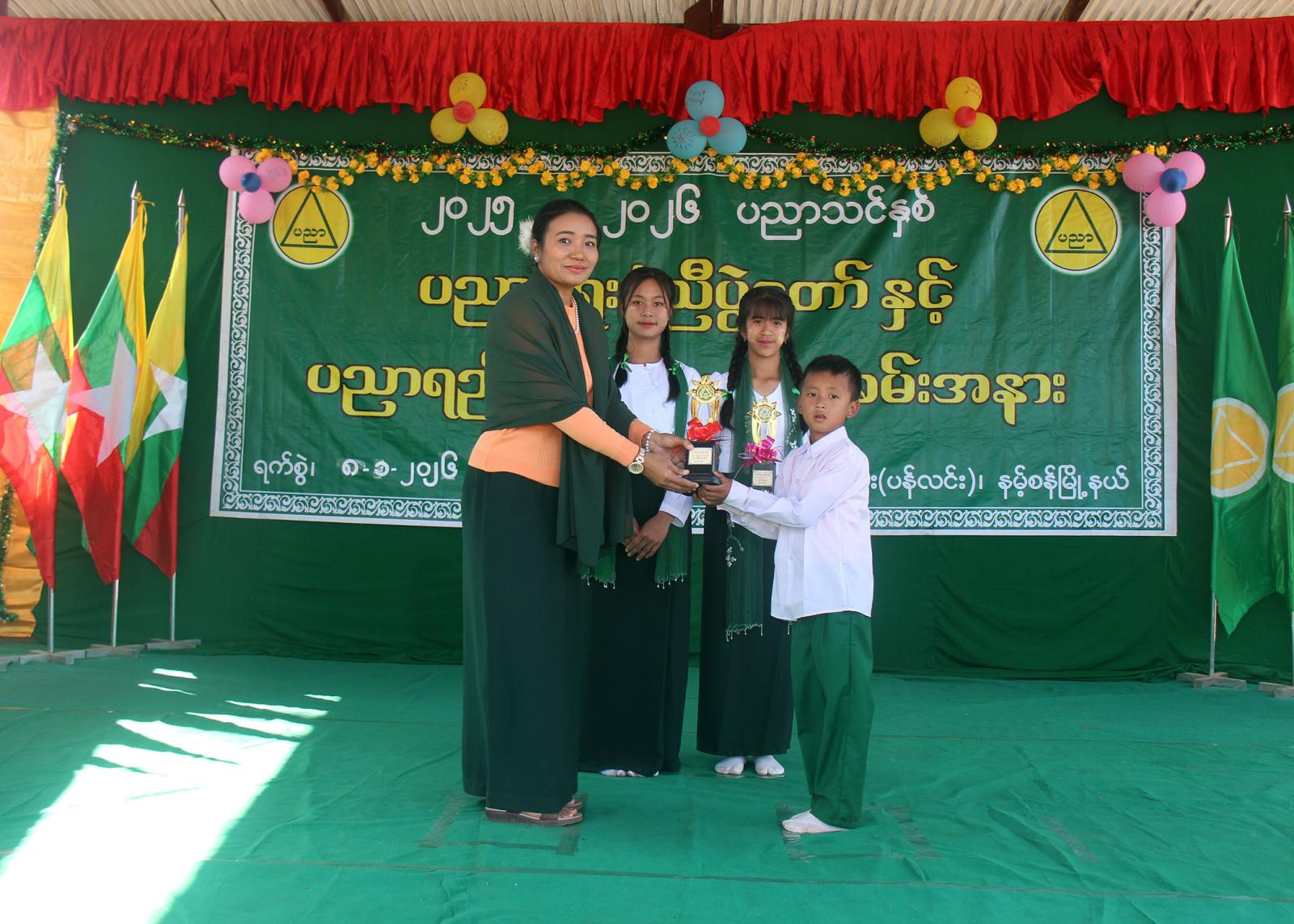 ဆက်လက်၍ မတ်ကျန်းပြည်သူ့စစ်ဌာနေအဖွဲ့မှ ပညာရေးတာဝန်ခံ ဦးခွန်ထွန်းစံ၊ အ.ထ.က(ခွဲ)လွိုင်ငင်းကြီးတာဝန်ခံ ကျောင်းအုပ်ဆရာမ ဒေါ်ဟေသာထိုက်နှင့် တာဝန်ရှိသူများက မြို့နယ်အဆင့် ပြိုင်ပွဲများတွင် အားကစားနှင့်ဘာသာရပ်ထူးချွန်ဆုရရှိသူများ၊ အထိမ်းအမှတ်နေ့ပြိုင်ပွဲများတွင် ဆုရရှိသူများ၊ ကျောင်းသားအားကစားပြိုင်ပွဲများနှင့် အတန်းအလိုက် ဘာသာရပ်ထူးချွန်ဆုရရှိသူ ကျောင်းသား၊ ကျောင်းသူများကို ဆုတံဆိပ်၊ ဂုဏ်ပြုမှတ်တမ်းနှင့် ဂုဏ်ပြုဆုငွေများ အသီးသီး ပေးအပ်ချီးမြှင့်ခဲ့သည်။