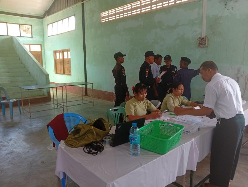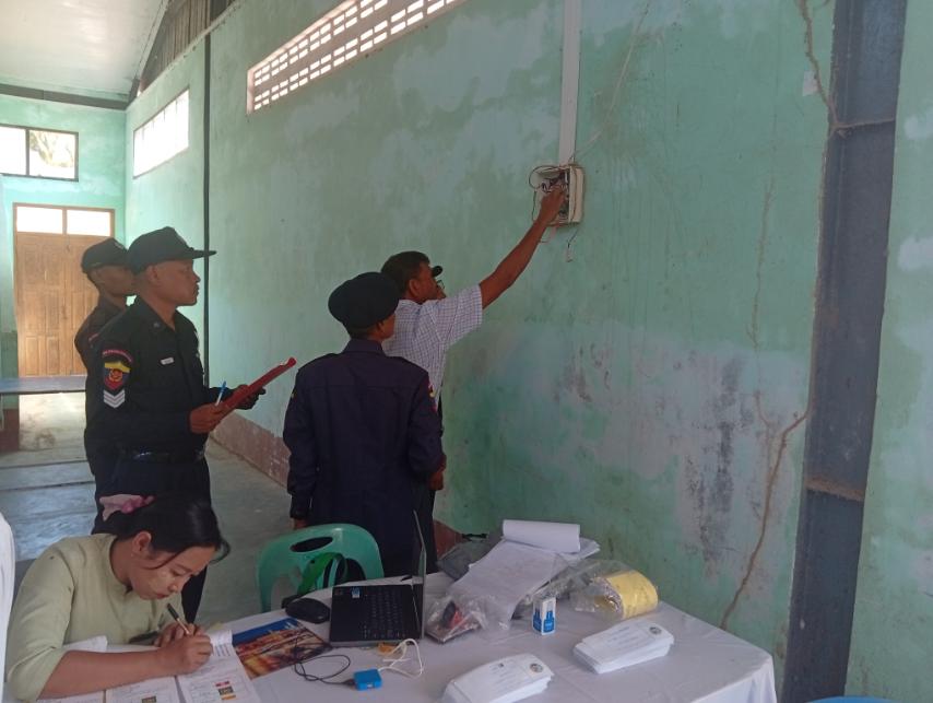 တနင်္သာရီတိုင်းဒေသကြီး၊ မြိတ်ခရိုင်၊ ကျွန်းစုမြို့နယ်တွင် မဲရုံဖွင့်လှစ်မည့် အဆောက်အဦများအား မီးဘေးလုံခြုံရေးအတွက် ဇန်နဝါရီလ ၈ နံနက်ပိုင်းက မဲရုံအဖြစ် ဖွင့်လှစ်မည့် ကျွန်းစုမြို့၊ မိုးလုံလေလုံအားကစားခန်းမ၌ ဆောင်ရွက်သည်။
