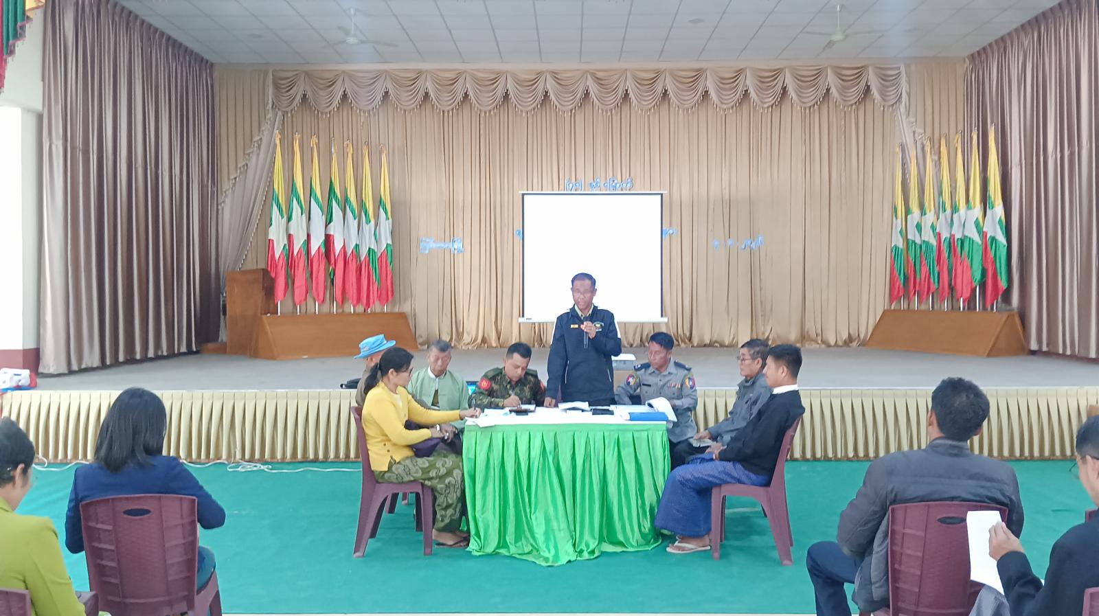 ရွေးကောက်ပွဲကော်မရှင်အဖွဲခွဲဥက္ကဋ္ဌ ဦးသန်းမောင်က ကြိုတင်မဲကိစ္စရပ်များကို ဆွေးနွေးခဲ့ပြီး မြို့နယ်လူဝင်မှုကြီးကြပ်ရေးနှင့်ပြည်သူ့အင်အားဝန်ကြီးဌာနမှ မြို့နယ်ဦစီးမှူး ဦးအောင်သန်းက မှတ်ပုံတင်ကိစ္စရပ်များဆွေးနွေးရှင်းလင်းခြင်းနှင့် တက်ရောက်လာသောဌာနဆိုင်ရာများမှ ရွေးကောက်ပွဲနှင့်ပတ်သက်၍ သိလိုသည်များကို ဆွေးနွေးတင်ပြခဲ့ကြောင်း သိရသည်။