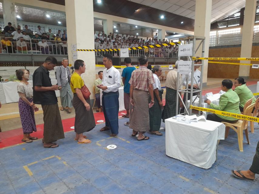 ရန်ကုန်တိုင်းဒေသကြီး၊ မရမ်းကုန်းခရိုင်၊ လှိုင်မြို့နယ်တွင် ၂၀၂၆ ခုနှစ် ဇန်နဝါရီ ၁၁ ရက်နေ့တွင် ကျင်းပပြုလုပ်မည့် ပါတီစုံဒီမိုကရေစီအထွေထွေရွေးကောက်ပွဲကာလတွင် ဆန္ဒမဲပေးဆောင်ရွက်မည့် မဲရုံများ စနစ်တကျဖြစ်စေရေးအတွက် စံနမူနာပြမဲရုံပုံစံခင်းကျင်းမှု သရုပ်ပြအခမ်းအနားကို ယနေ့ မွန်းလွဲ (၂) နာရီအချိန်က လှိုင်တက္ကသိုလ်နယ်မြေ၊ အမျိုးသားအားကစားရုံတွင် ကျင်းပခဲ့ကြောင်း သိရသည်။