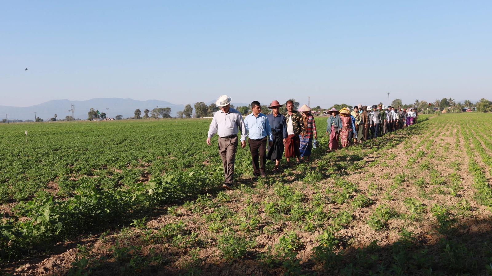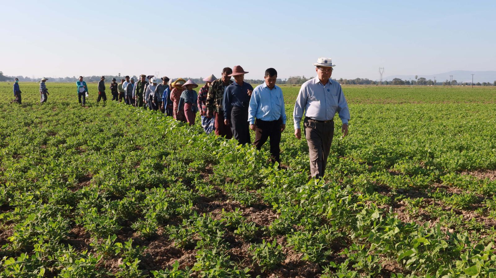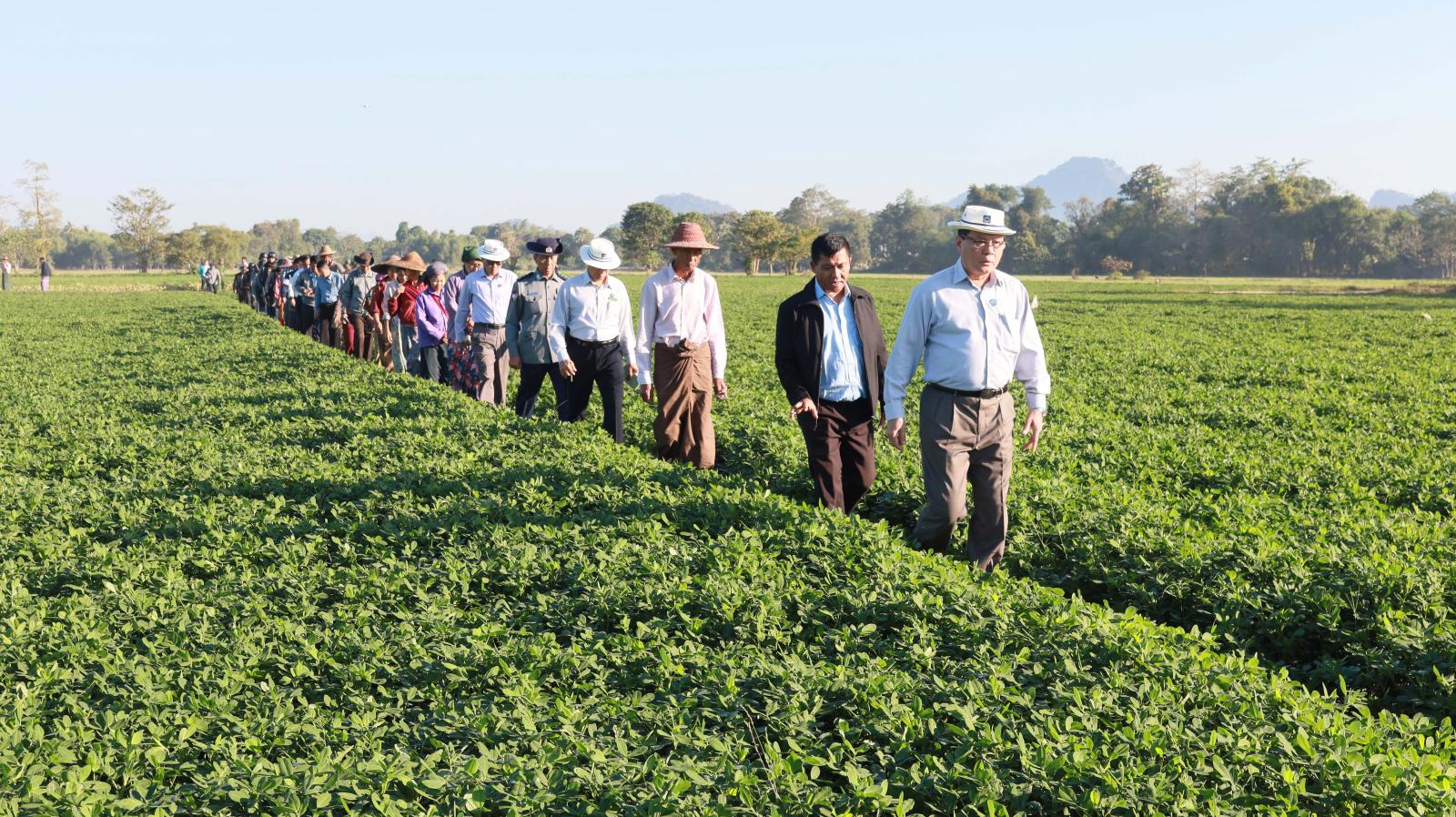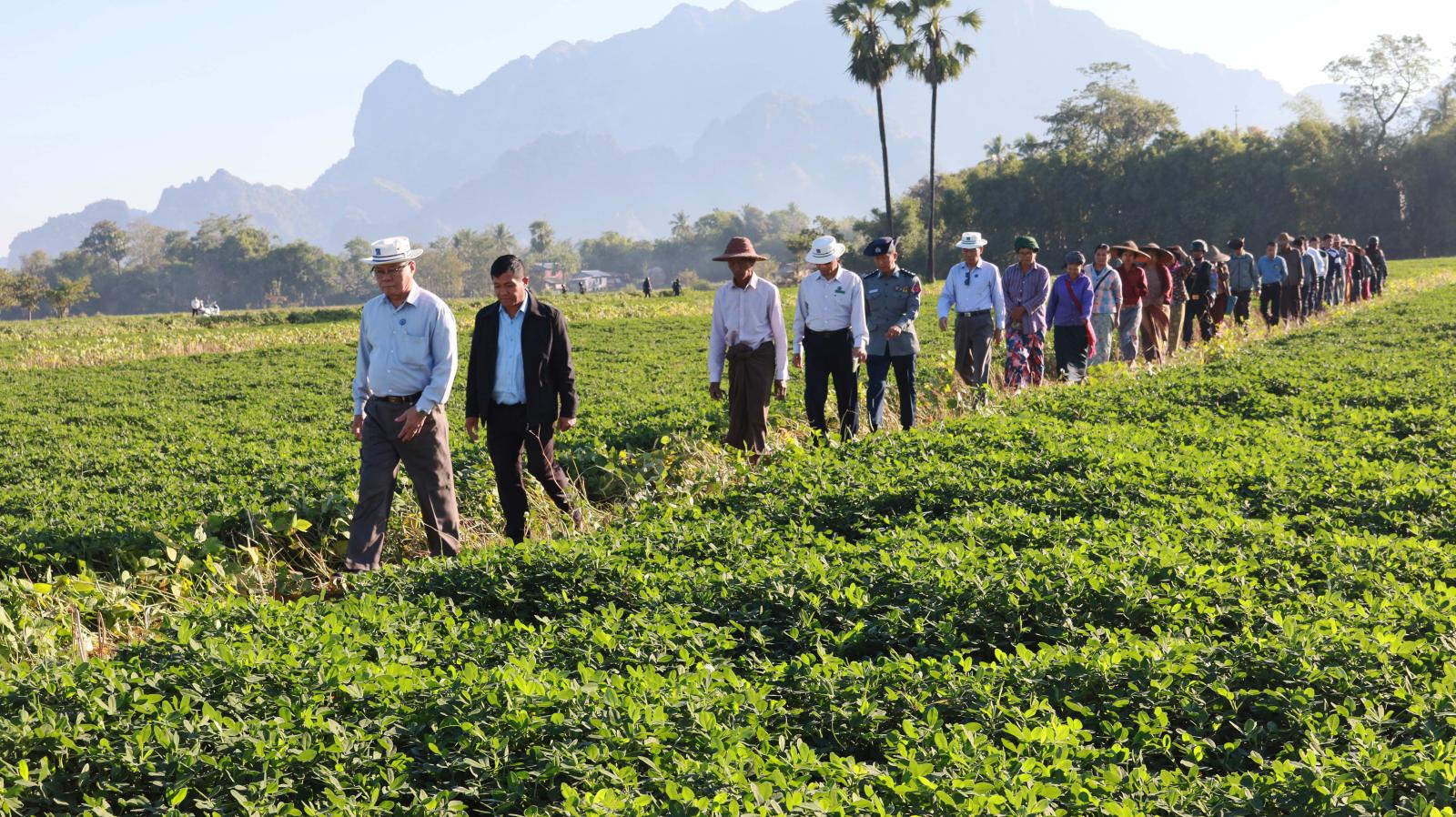 ထို့နောက် ပြည်နယ်ဝန်ကြီးချုပ်နှင့်တာဝန်ရှိသူများသည် ဆောင်းဆီထွက်သီးနှံစိုက်ခင်းဧရိယာအတွင်း စိုက်ပျိုးထားရှိသည့် ပဲတီစိမ်းစိုက်ခင်းများအား တောင်သူများက ရွက်ဖျန်းမြေဩဇာများ စုပေါင်း ပက်ဖျန်းခြင်းကို ကြည့်ရှုအားပေးပြီး ဘားအံမြို့နယ်၊ ဝါးဆူးကျေးရွာ အနောက်ဘက်ကွင်းရှိ ဆောင်းဆီထွက်သီးနှံ(မြေပဲ)စိုက်ခင်းအား ကြည့်ရှုအားပေးကာ တာဝန်ရှိသူများအား လိုအပ်သည်များ မှာကြားခဲ့သည်။
