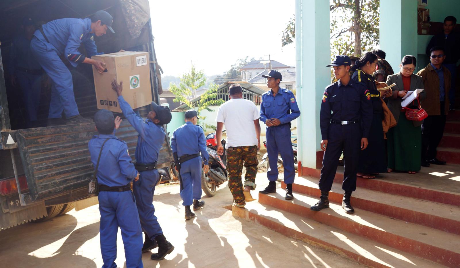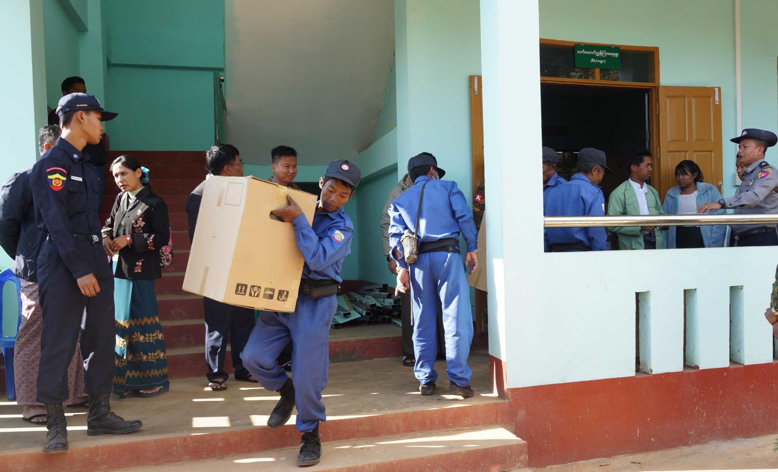 ထိုသို့မဲပေးစက်နှင့် ဆက်စပ်ပစ္စည်းများ ထုတ်ပေးရာတွင် မြို့နယ်ရွေးကောက်ပွဲကော်မရှင်အဖွဲ့ခွဲဥက္ကဋ္ဌနှင့် အဖွဲ့ဝင်များနှင့် ဌာနဆိုင်ရာများပူးပေါင်း၍ မြို့နယ်အတွင်းရှိ မဲရုံ (၂၃)ရုံတွင် အသုံးပြုမည့် မဲပေးစက်များနှင့် ဆက်စပ်ပစ္စည်းများအား စနစ်တကျစီမံ၍ သက်ဆိုင်ရာ ရပ်ကွက်/ကျေးရွာ ကော်မရှင်အဖွဲ့ခွဲများလက်ဝယ်သို့ ထုတ်ပေးခဲ့ခြင်းဖြစ်ကြောင်း သိရှိရသည်။