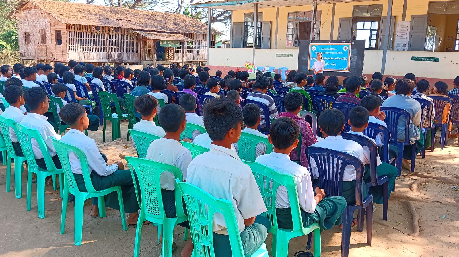 ရှေးဦးစွာ ပြန်ကြားရေးနှင့်ပြည်သူ့ဆက်ဆံရေးဦးစီးဌာနမှ ဒုတိယဦးစီးမှူး ဒေါ်အေးအေးဟန်က လူငယ်များအနေဖြင့် ဘဝတိုးတက်မှုရရှိလာအောင် စာများများဖတ်ကြပါရန်၊ အရွယ်မရောက်သေးသည့် ကလေးငယ်များအား မတရားအလုပ်စေခိုင်းမှုမှ ကာကွယ်ရန်၊ ကလေးအလုပ်သမားပပျောက်ရေး၊ လူကုန်ကူးမှု၏ဆိုးကျိုးများကို ကျောင်းသား/ကျောင်းသူများက လိုက်နာဆောင်ရွက်ကြရန် ဟောပြောခဲ့ပြီး အငယ်တန်းစာရေး ဒေါ်သုန်နဒီကိုက “တို့ပတ်ဝန်းကျင်ချစ်ခင်ကြပါစို့”နှင့် “ဧရာမမုန်လာဥကြီး”ပုံပြင်များကို မူလတန်းကလေးငယ်များ ဗဟုသုတရရှိစေရန်နှင့် ပျော်ရွှင်စေရန် ပြောကြားခဲ့သည်။