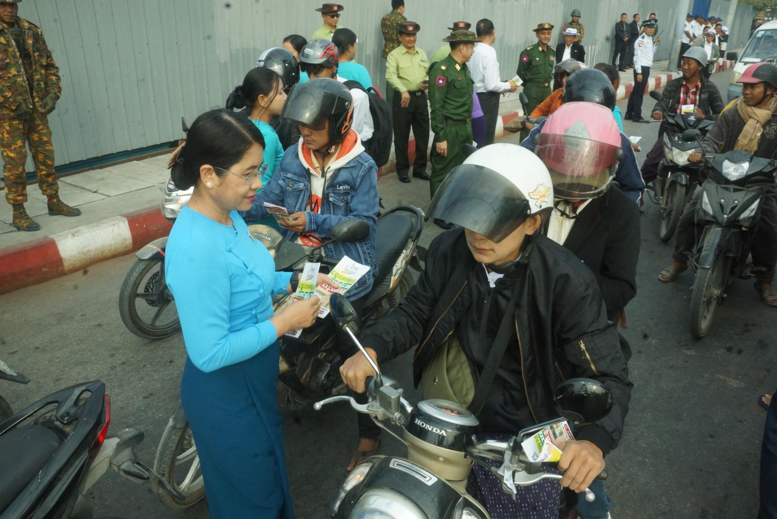 အဆိုပါ လက်ကမ်းဖြန့်ဝေမှုကို မဟာအောင်မြေမြို့နယ်ရှိ (၁၈)ရပ်ကွက်အတွင်း ရန်၊ မန်းလမ်း၊ ၃၈ လမ်းထောင့် ခရီးသွားပြည်သူများနှင့် လူစည်ကားသည့်နေရာများ၌ “ရွေးကောက်ပွဲတွင် ဒို့အတူတူမဲပေးကြမယ်” ခေါင်းစဉ်ဖြင့် အသိပညာပေးလက်ကမ်းစာစောင်များကို မန္တလေးတိုင်းဒေသကြီးအစိုးရအဖွဲ့ဝန်ကြီးချုပ် ဦးမျိုးအောင်နှင့် တိုင်းဒေသကြီးအစိုးရအဖွဲ့ဝင်  ဝန်ကြီးများ၊  အလယ်ပိုင်းတိုင်း စစ်ဌာနချုပ်တိုင်မှူး ဗိုလ်မှူးချုပ် တင်မင်းလတ်နှင့် တာဝန်ရှိသူများ၊ မြို့နယ်စီမံခန့်ခွဲရေးနှင့်အုပ်ချုပ်ရေးကော်မတီဥက္ကဋ္ဌ ဦးမောင်မောင်နှင့်အဖွဲ့ဝင်များ၊ ဌာနဆိုင်ရာတာဝန်ရှိသူများ၊ မြို့နယ်မိခင်နှင့်ကလေးစောင့်ရှောက်မှုအဖွဲ့နှင့် မြို့နယ်အမျိုးသမီးရေးရာအဖွဲ့ဥက္ကဋ္ဌ ဒေါ်ဇင်မာထွန်းနှင့်အဖွဲ့များ၊ ရပ်ကွက်အုပ်ချုပ်ရေးမှူးများမှ အများပြည်သူများအား ဆန္ဒမဲပေးနိုင်စေရန် “ရွေးကောက်ပွဲတွင် ဒို့အတူတူမဲပေးကြမယ်” ခေါင်းစဥ်ဖြင့် အသိပညာပေးလက်ကမ်းစာစောင်များကို ဖြန့်ဝေခဲ့ကြောင်း သိရသည်။