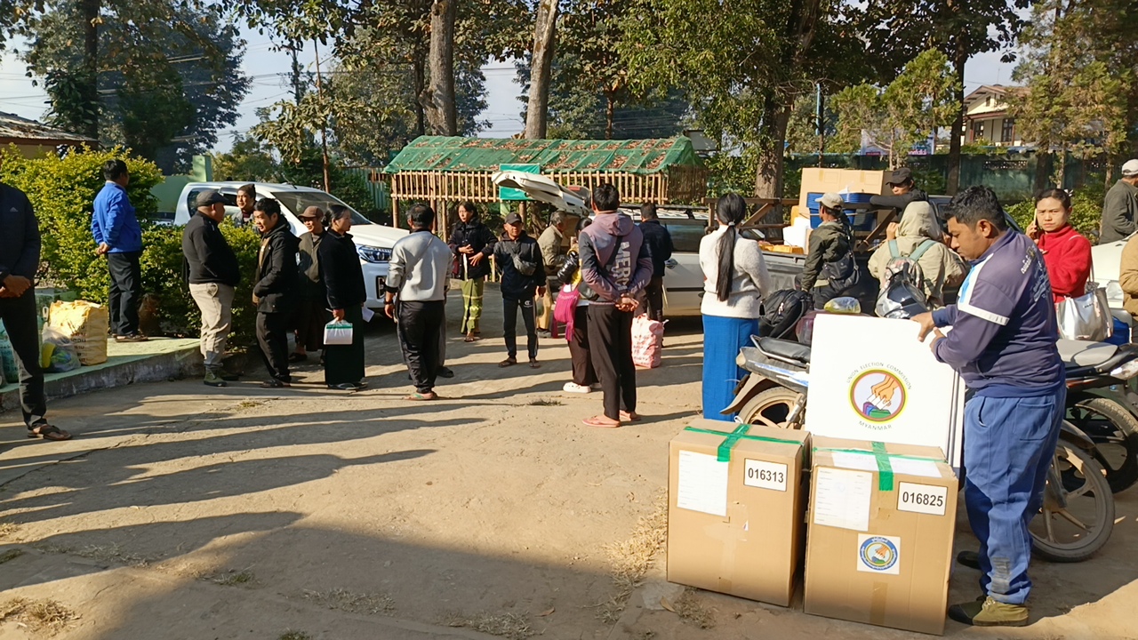 ၂၀၂၆ ခုနှစ်၊ ဇန်နဝါရီလ ၁၁ ရက်နေ့တွင် ကျင်းပမည့် ပါတီစုံဒီမိုကရေစီအထွေထွေရွေးကောက်ပွဲအတွက် မဲရုံမှူး၊ဒုမဲရုံမှူးနှင့်အဖွဲ့ဝင်များမှ ရွေးကောက်ပွဲဆိုင်ရာမဲပေးစက်များ၊ မဲရုံသုံးဆက်စပ်ပစ္စည်းများကို မြို့နယ်ရွေးကောက်ပွဲကော်မရှင်အဖွဲ့ခွဲရုံး၌ ယနေ့နံနက်ပိုင်းက ထုတ်ယူပြီး တာဝန်ကျရာမဲရုံအသီးသီးသို့ ထွက်ခွာသွားကြသည်။