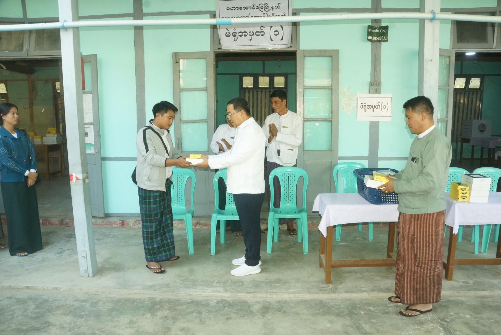 ‎‎မန္တလေးတိုင်းဒေသကြီး၊ မဟာအောင်မြေခရိုင်၊ မဟာအောင်မြေမြို့နယ်၌ ၂၀၂၅ ခုနှစ် ပါတီစုံဒီမိုကရေစီအထွေထွေရွေးကောက်ပွဲ အောင်မြင်စွာကျင်းပနိုင်စေရန် မဲရုံမှူး၊ ဒုမဲရုံးမှူးများနှင့် မဲရုံတာဝန်ကျသူများနှင့်တွေ့ဆုံ၍ မဲဆန္ဒရှင်များ၏ မဲစာရင်းများ လွယ်ကူလျှင်မြန်စွာ ရှာဖွေနိုင်စေရန် Android Tablet PC များကို ယမန်နေ့မွန်းလွဲ ၂ နာရီက အမှတ် (၂) အခြေခံပညာအထက်တန်းကျောင်းခွဲ၌ ပေးအပ်ခဲ့သည်။