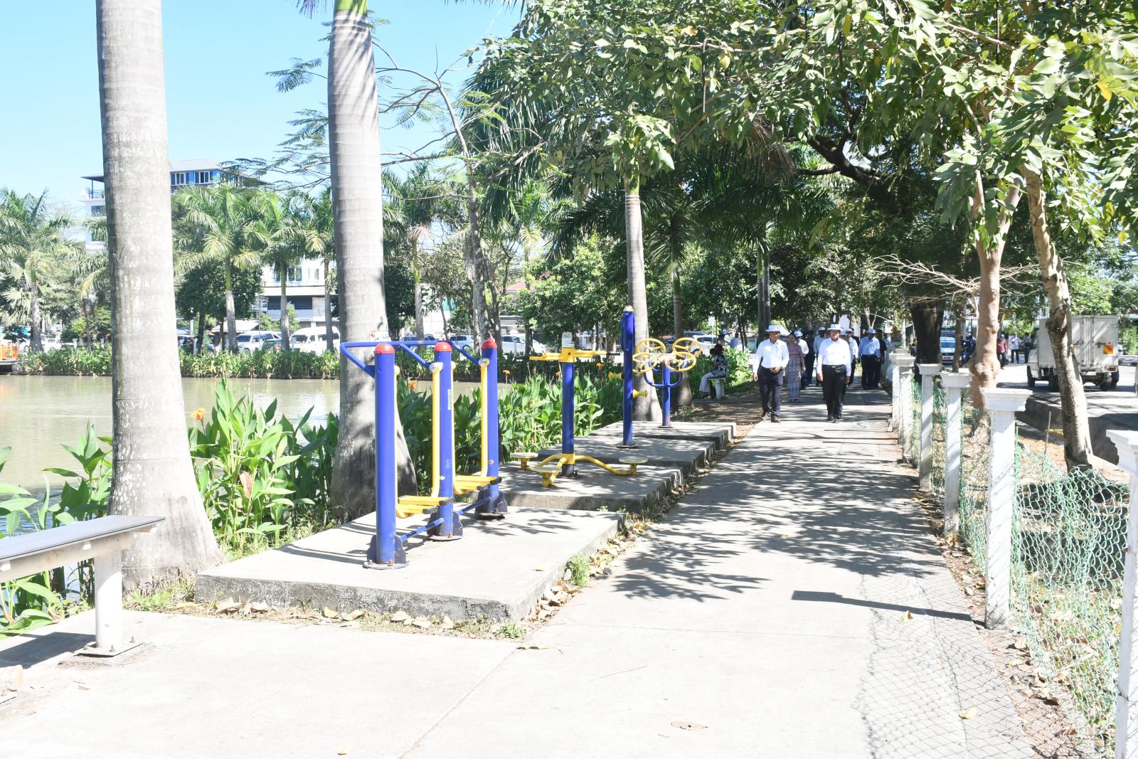 ထို့နောက် ရန်ကုန်တိုင်းဒေသကြီး ဝန်ကြီးချုပ် ဦးစိုးသိန်းနှင့် အဖွဲ့သည် ရန်ကုန်တိုင်းဒေသကြီး၊ ဒဂုံမြို့သစ် (မြောက်ပိုင်း) မြို့နယ်ရှိ နတ်ရေကန်ပတ်ဝန်းကျင်တွင် သစ်ပင်၊ ပန်းပင်များ စိုက်ပျိုးထားရှိမှု၊ ပြည်သူများ ကိုယ်လက်လေ့ကျင့်ခန်းဆောင်ရွက်နိုင်ရေး အားကစားပစ္စည်းများ စီစဉ်ဆောင်ရွက်ထားရှိမှုနှင့် သန့်ရှင်းသာယာလှပရေးအတွက် လုပ်ငန်းများ ဆောင်ရွက်ထားရှိမှု အခြေအနေအား ကြည့်ရှုစစ်ဆေးပြီး တာဝန်ရှိသူများက လုပ်ငန်းဆောင်ရွက်ထားရှိမှု အခြေအနေများကို ရှင်းလင်းတင်ပြရာ တိုင်းဒေသကြီးဝန်ကြီးချုပ်က လိုအပ်သည်များကို မှာကြားခဲ့ကြောင်း သိရသည်။