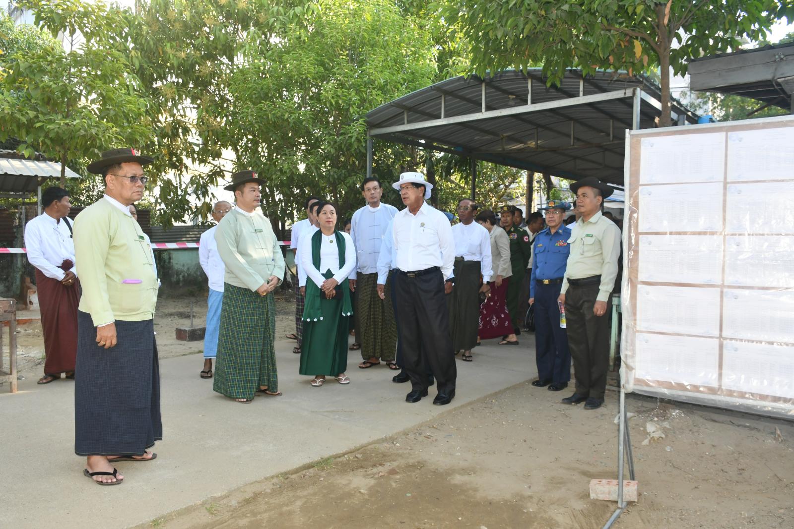 ထို့နောက် ရန်ကုန်တိုင်းဒေသကြီး ဝန်ကြီးချုပ် ဦးစိုးသိန်းနှင့် အဖွဲ့သည် ၂၀၂၅ ခုနှစ်၊ ပါတီစုံ ဒီမိုကရေစီအထွေထွေရွေးကောက်ပွဲ အောင်မြင်စွာကျင်းပနိုင်ရေးအတွက် ရန်ကုန်တိုင်းဒေသကြီး၊ ဒေါပုံမြို့နယ်၊ မြို့သစ်ရပ်ကွက်၊ အမှတ် (၂) အခြေခံပညာအလယ်တန်းကျောင်းရှိ မဲရုံ (၁) နှင့် (၂) ပြင်ဆင်ထားရှိမှုအခြေအနေအား ကြည့်ရှုစစ်ဆေးပြီး တိုင်းဒေသကြီးဝန်ကြီးချုပ်က လိုအပ်သည်များကို မှာကြားသည်။